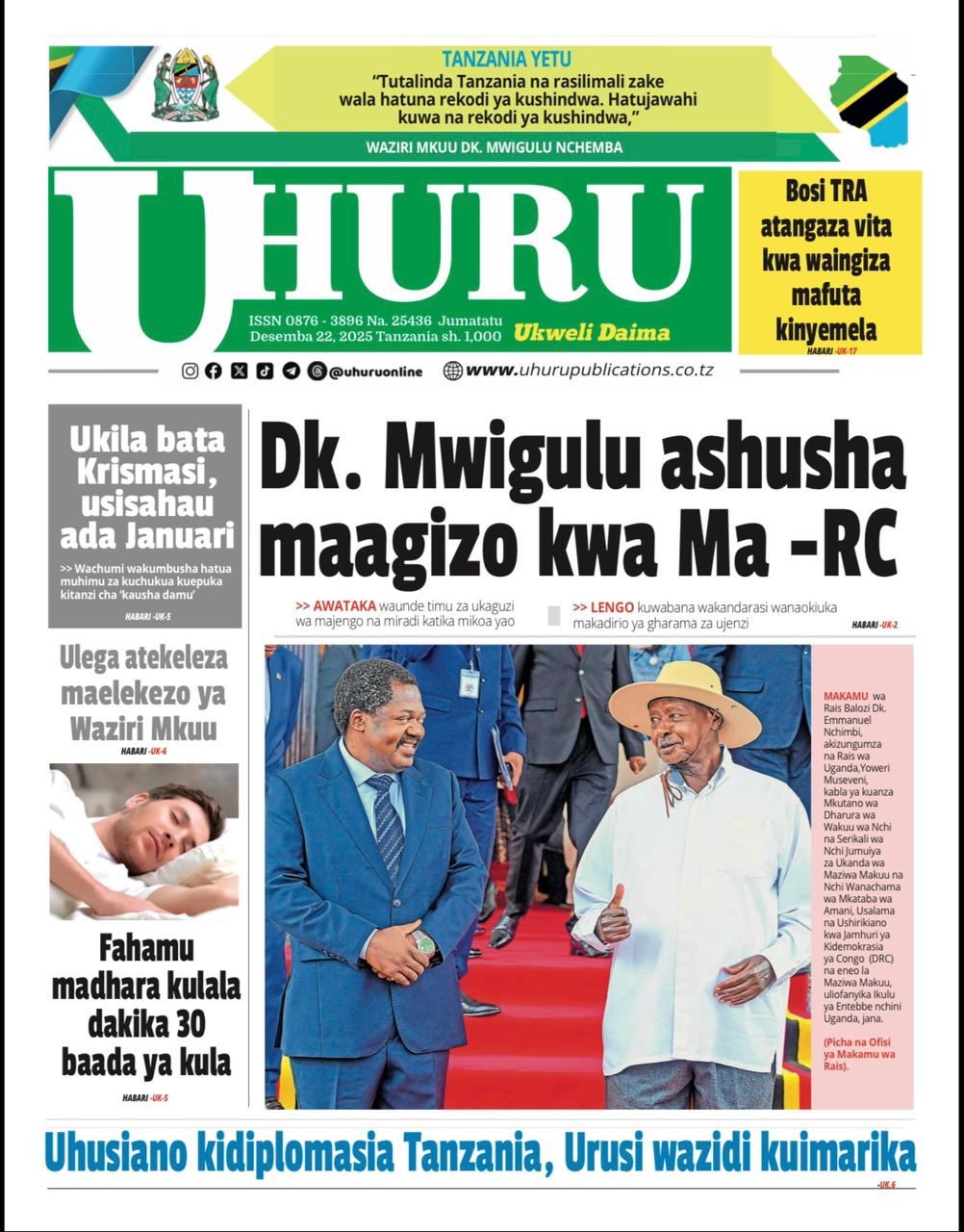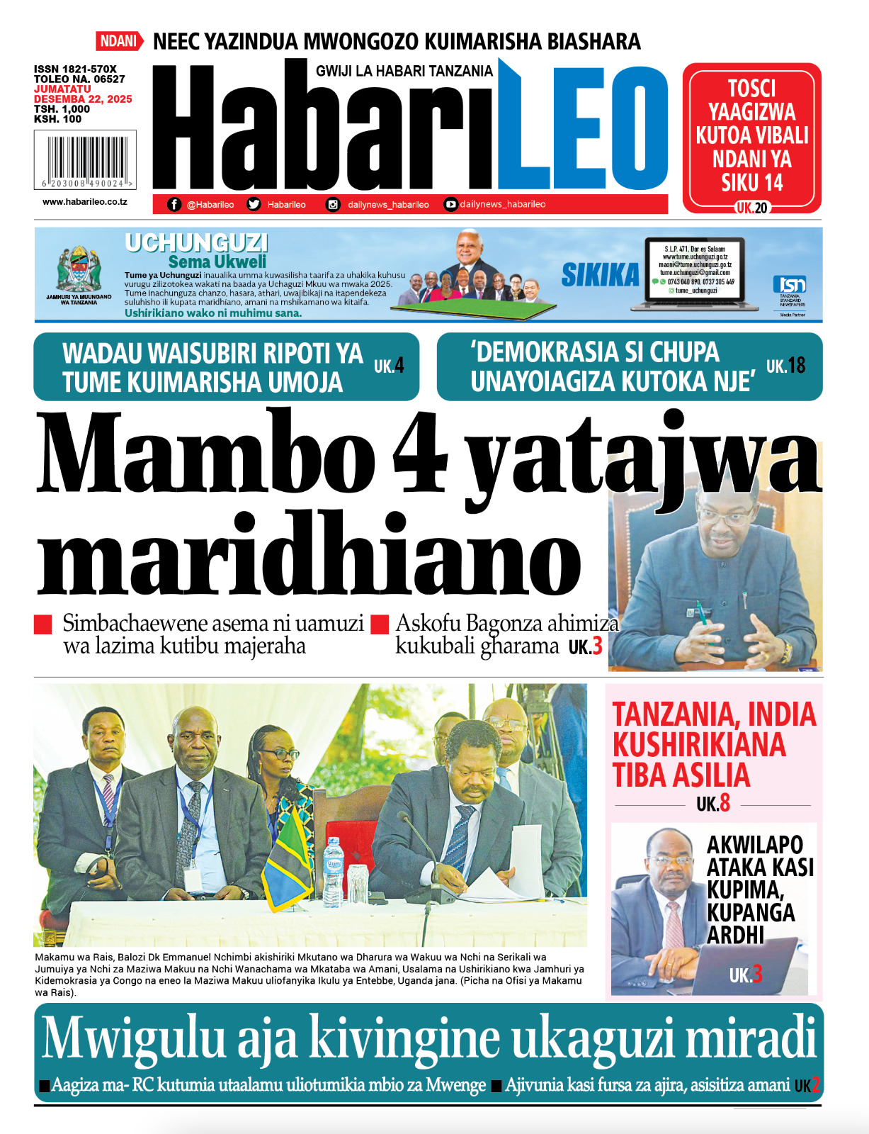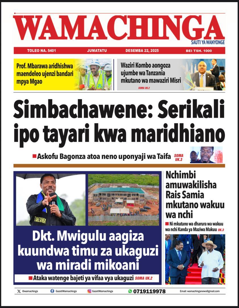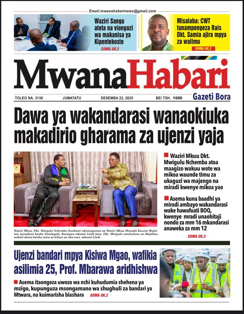 Featured • Magazeti PATA HABARI MOTO MOTO KATIKA MAGAZETI YA LEO JUMATATU DISEMBA 22,2025 2 hours agoby Alex Sonna15 Views Written by Alex Sonna FacebookXGoogle+PinterestLinkedIn