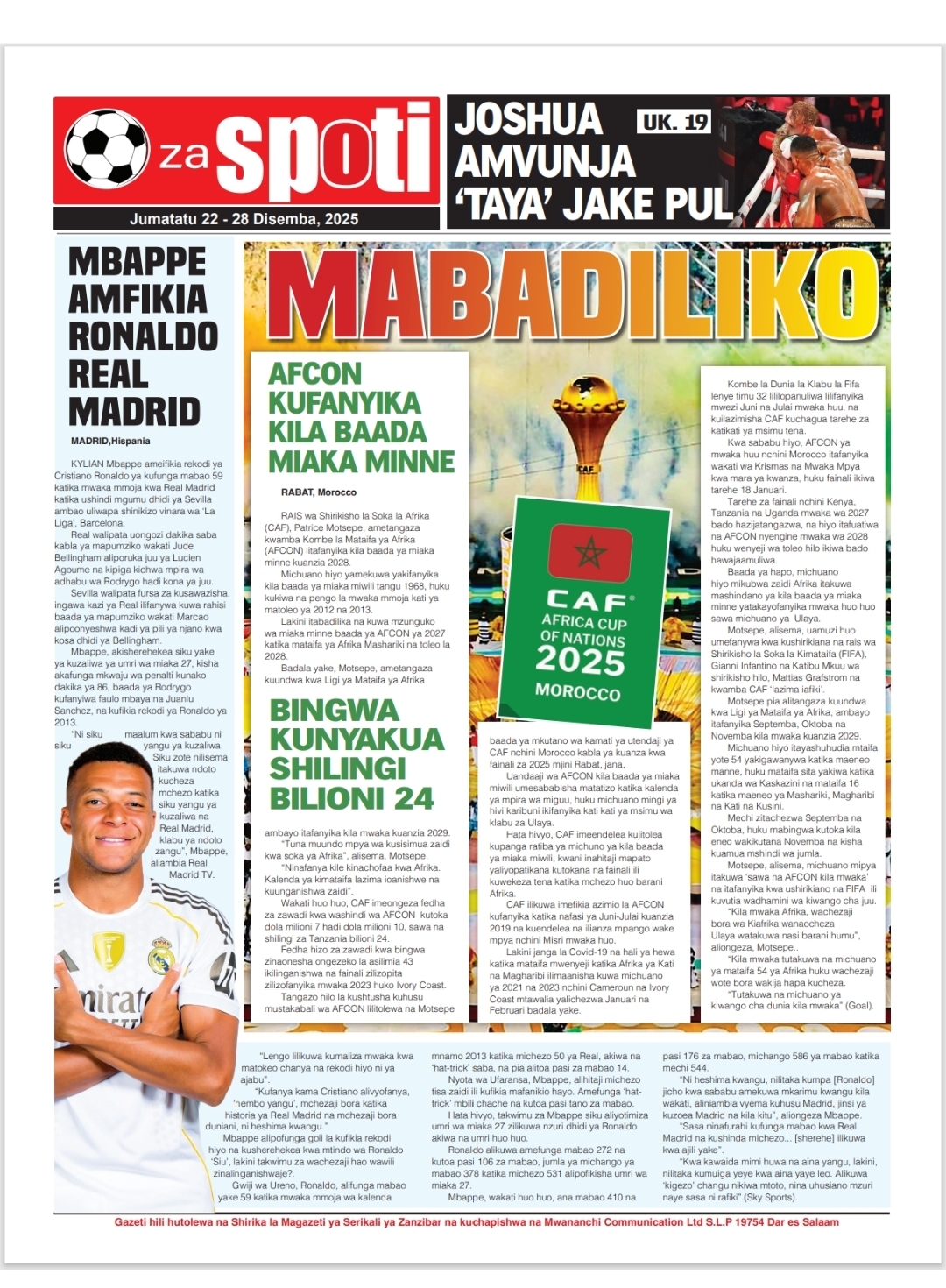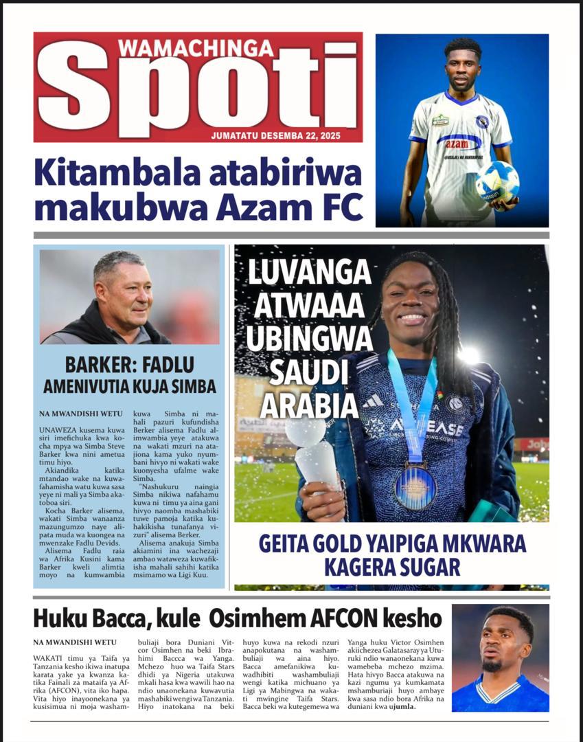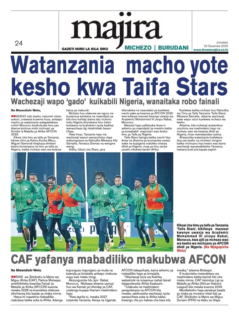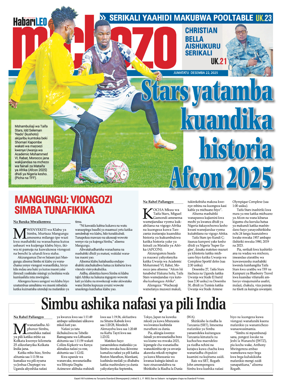 Featured • Magazeti PATA HABARI MOTO MOTO KATIKA MAGAZETI YA LEO JUMATATU DISEMBA 22,2025 2 hours agoby Alex Sonna15 Views Written by Alex Sonna FacebookXGoogle+PinterestLinkedIn