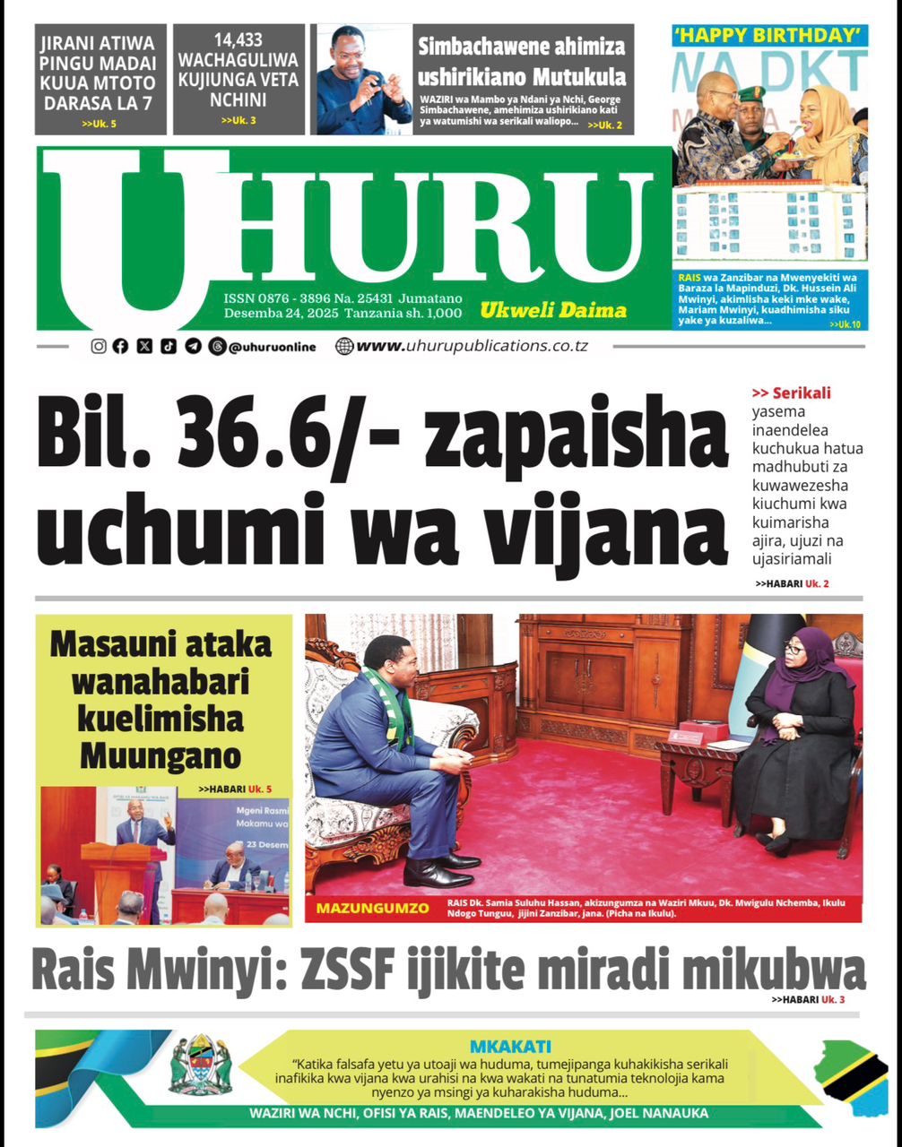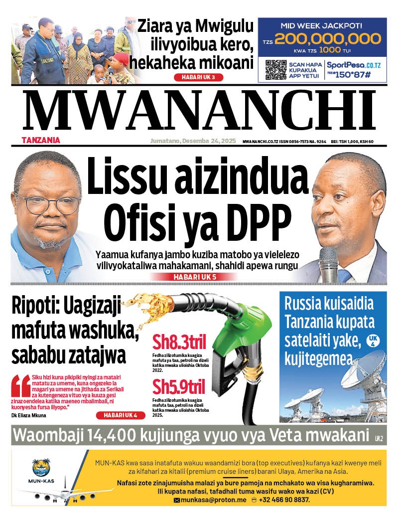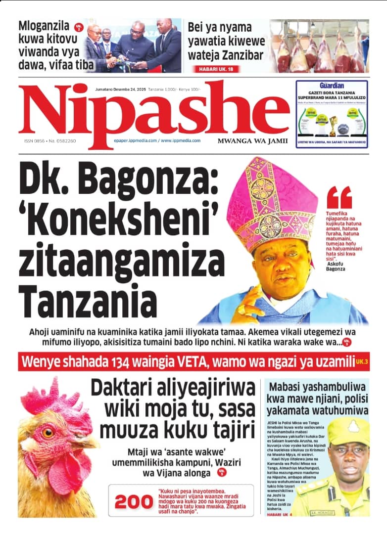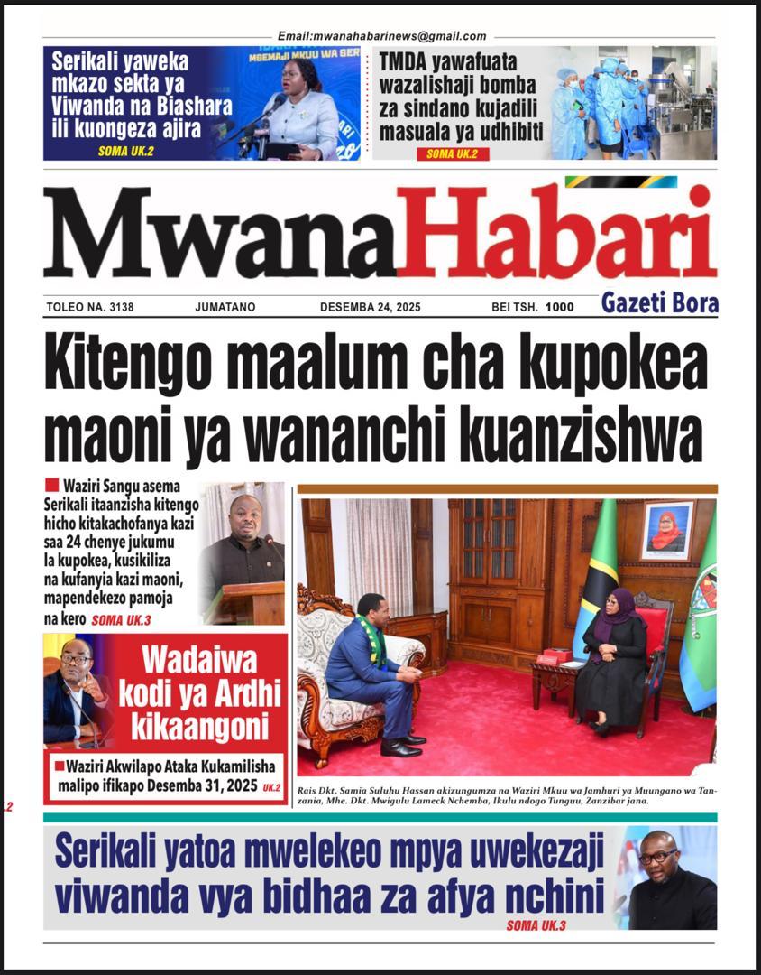 Featured • Magazeti PATA HABARI MOTO MOTO KATIKA MAGAZETI YA LEO JUMATANO DISEMBA 24,2025 1 minute agoby Alex Sonna1 Views Written by Alex Sonna FacebookXGoogle+PinterestLinkedIn