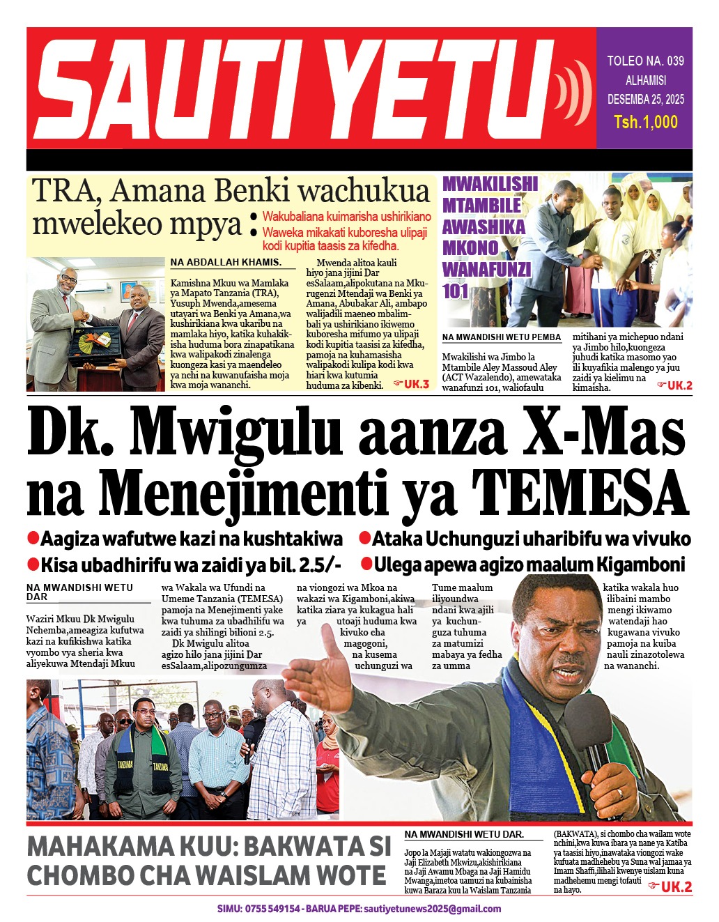 Featured • Magazeti PATA HABARI MOTO MOTO KATIKA MAGAZETI YA LEO DISEMBA 25,2025 1 hour agoby Alex Sonna15 Views Written by Alex Sonna FacebookXGoogle+PinterestLinkedIn
