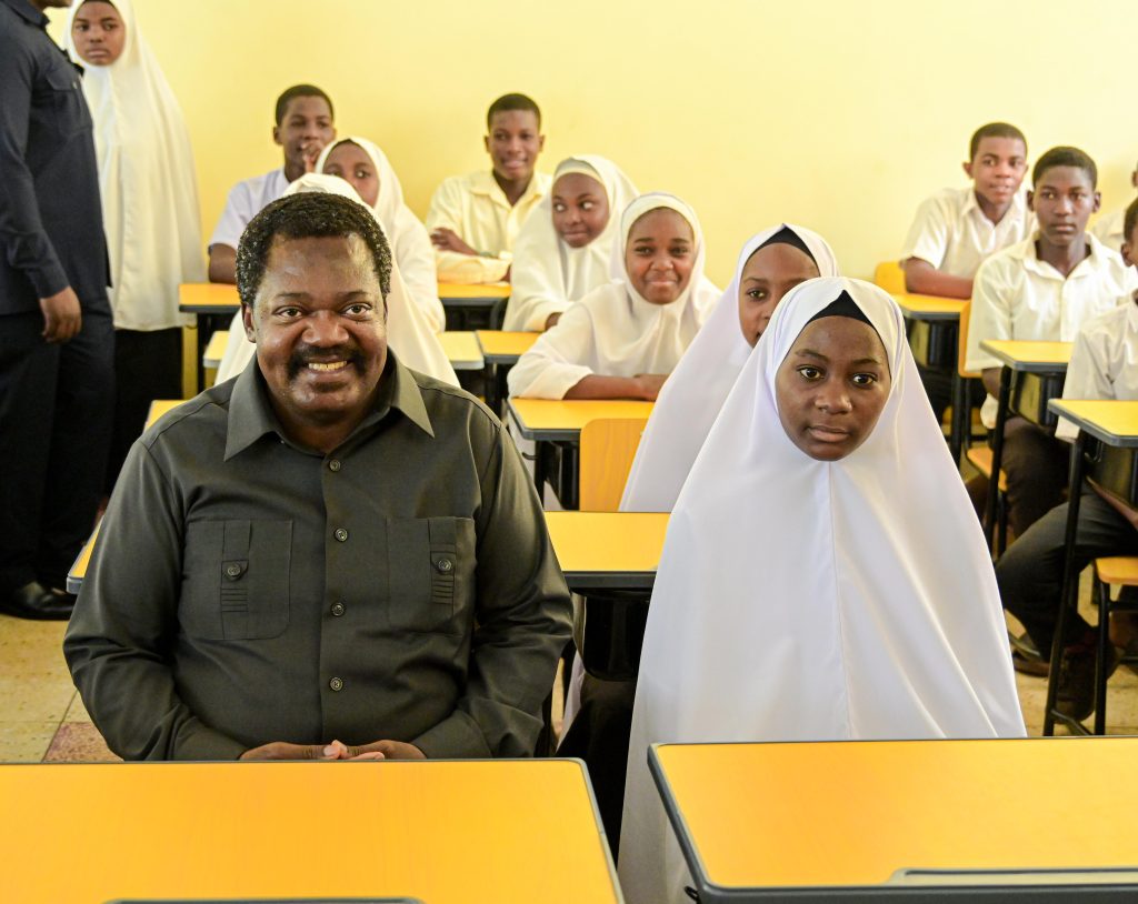 Makamu wa Rais wa Jamhuri ya Muungano wa Tanzania Mhe.Balozi Dkt. Emmanuel Nchimbi, akiwa katika picha ya pamoja na Wanafunzi wa Kidato cha Kwanza wa Skuli ya Sekondari ya Makunduchi wakati wa ufunguzi wa Skuli hiyo iliyopo Mkoa wa Kusini Unguja, Zanzibar ikiwa ni shamrashamra za Maadhimisho ya Miaka 62 ya Mapinduzi Matukufu ya Zanzibar leo tarehe 09 Januari 2025.