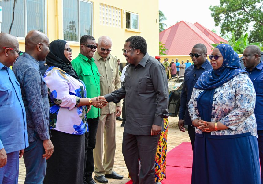 Makamu wa Rais wa Jamhuri ya Muungano wa Tanzania Mhe.Balozi Dkt. Emmanuel Nchimbi akisalimiana na Viongozi mbalimbali, wakati alipowasili Makunduchi, Mkoa wa Kusini Unguja, Zanzibar katika Ufunguzi wa Skuli ya Sekondari ya Makunduchi, ikiwa ni shamrashamra za Maadhimisho ya Miaka 62 ya Mapinduzi Matukufu ya Zanzibar. Tarehe 09 Januari 2025.