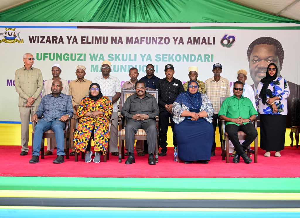 Makamu wa Rais wa Jamhuri ya Muungano wa Tanzania Mhe.Balozi Dkt. Emmanuel Nchimbi akiwa na Viongozi mbalimbali, katika picha ya pamoja na Wazee waliotoa maeneo yao kwaajili ya Ujenzi wa Skuli ya Sekondari Makunduchi, wakati wa ufunguzi wa Skuli hiyo iliyopo Mkoa wa Kusini Unguja, Zanzibar ikiwa ni shamrashamra za Maadhimisho ya Miaka 62 ya Mapinduzi Matukufu ya Zanzibar leo tarehe 09 Januari 2025.