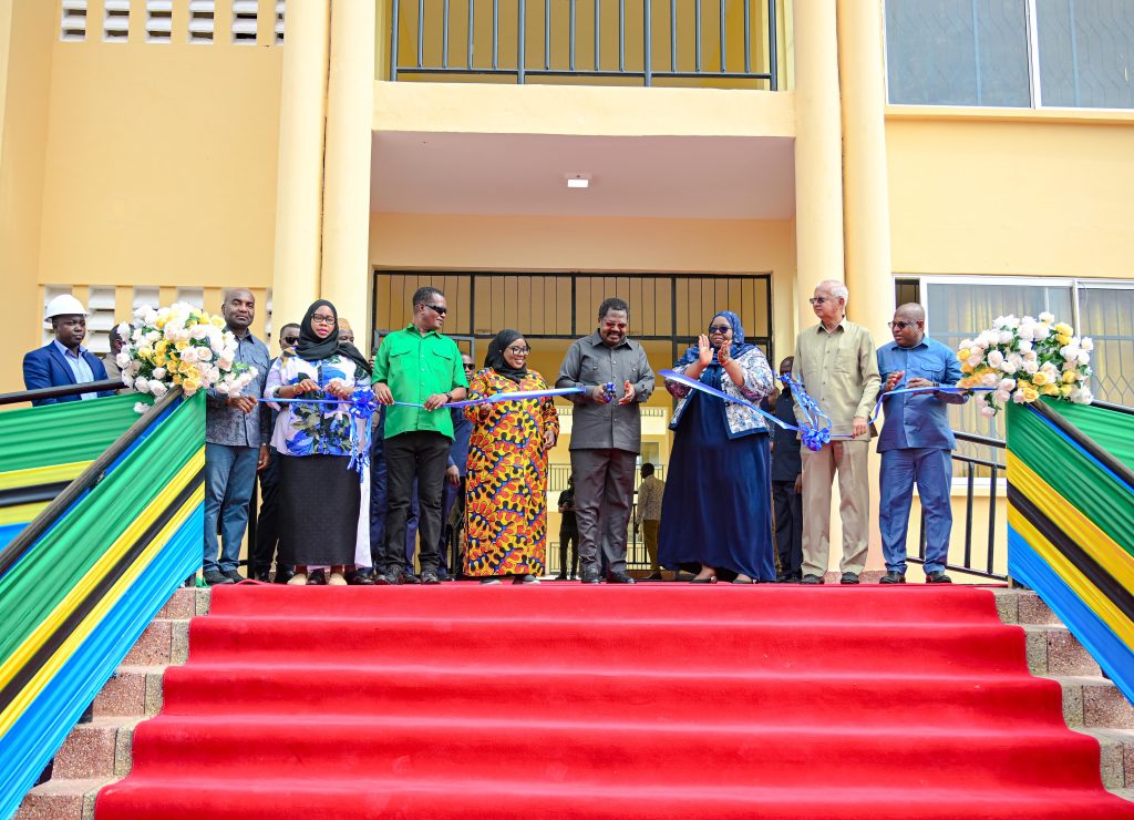 Makamu wa Rais wa Jamhuri ya Muungano wa Tanzania Mhe.Balozi Dkt. Emmanuel Nchimbi akikata utepe kuashiria Ufunguzi wa Skuli ya Sekondari ya Makunduchi, iliyopo Mkoa wa Kusini Unguja, Zanzibar ikiwa ni shamrashamra za Maadhimisho ya Miaka 62 ya Mapinduzi Matukufu ya Zanzibar leo tarehe 09 Januari 2025.