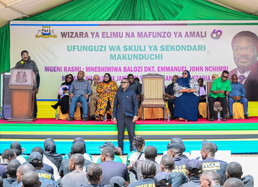 Makamu wa Rais wa Jamhuri ya Muungano wa Tanzania Mhe.Balozi Dkt. Emmanuel Nchimbi, akihutubia wakati wa Ufunguzi wa Skuli ya Sekondari ya Makunduchi iliyopo Mkoa wa Kusini Unguja, Zanzibar ikiwa ni shamrashamra za Maadhimisho ya Miaka 62 ya Mapinduzi Matukufu ya Zanzibar leo tarehe 09 Januari 2025.