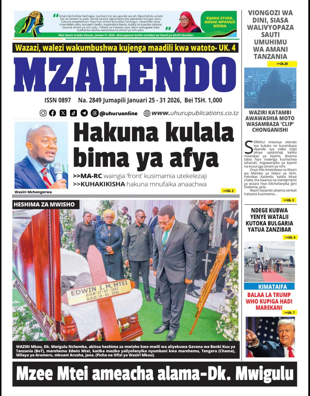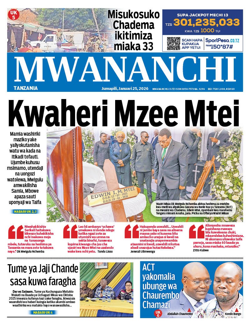 Featured • Magazeti PATA HABARI MOTO MOTO KATIKA MAGAZETI YA LEO JUMAPILI JANUARI 25,2026 3 months agoby Alex Sonna111 Views Written by Alex Sonna FacebookXGoogle+PinterestLinkedIn