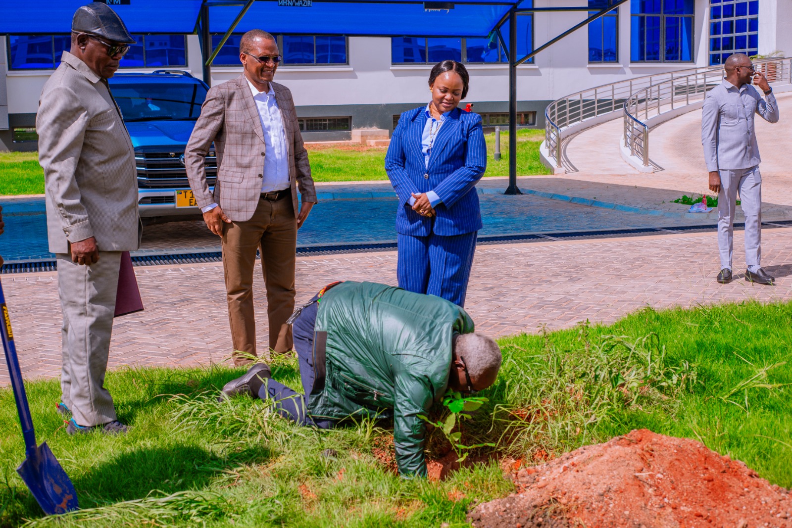 Zoezi la upandaji Miti mbele ya Ofisi ya Waziri Mtumba Jijini Dodoma limehusisha Kundi la Wazee Mkoa wa Dodoma, Menejimenti na Watumishi wa Wizara hiyo.