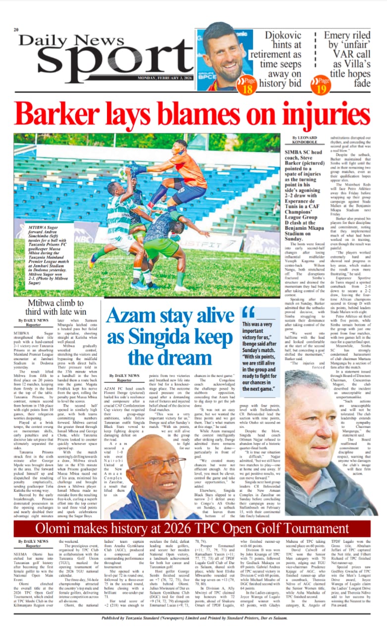 Featured • Magazeti PATA HABARI MOTO MOTO KATIKA MAGAZETI YA LEO FEBRUARI 3,2026 16 minutes agoby Alex Sonna2 Views Written by Alex Sonna FacebookXGoogle+PinterestLinkedIn