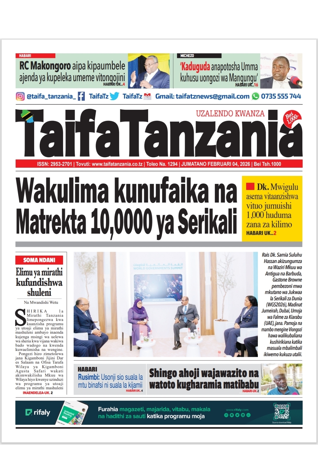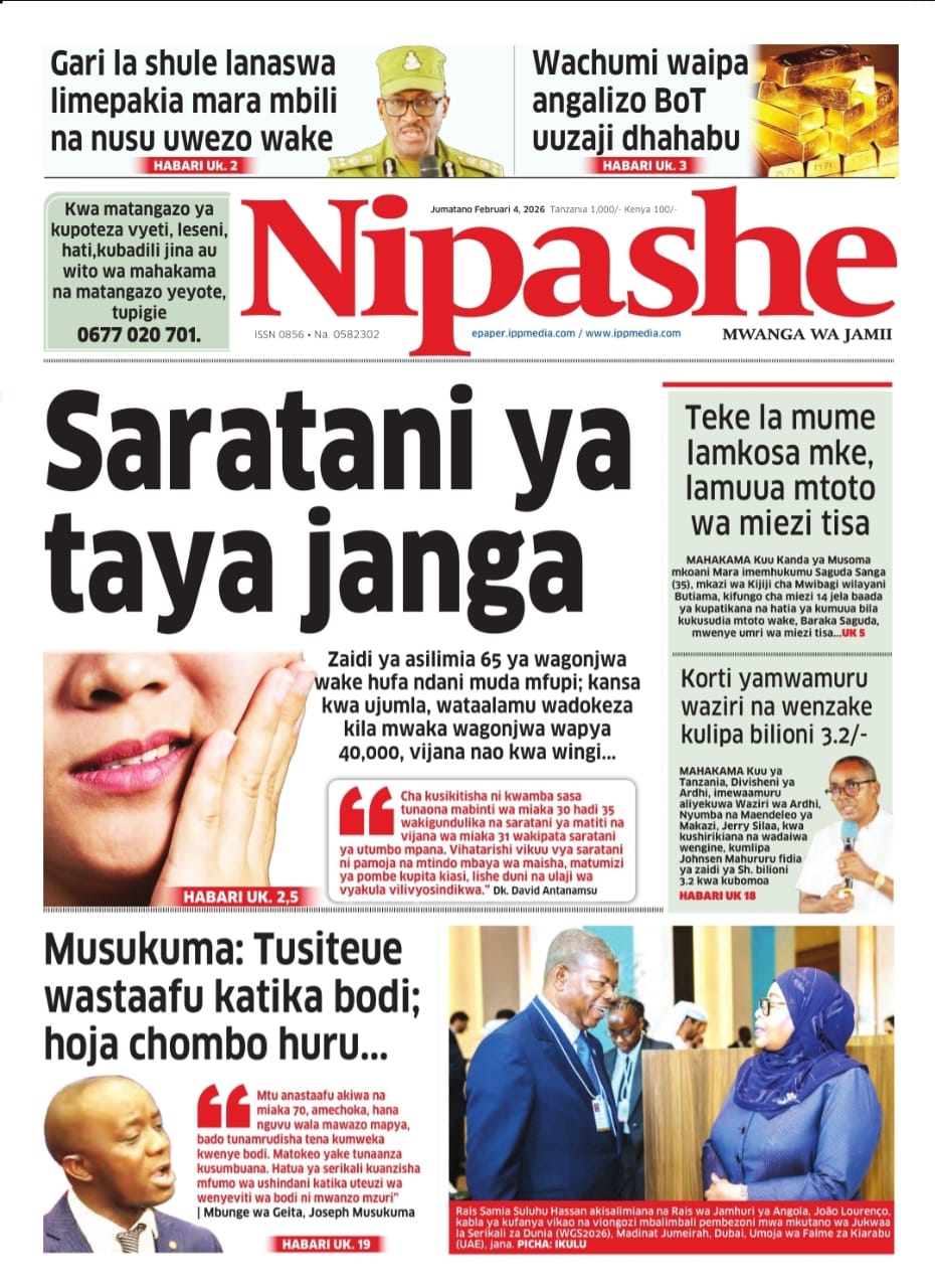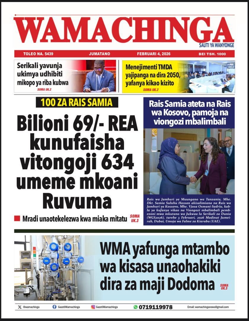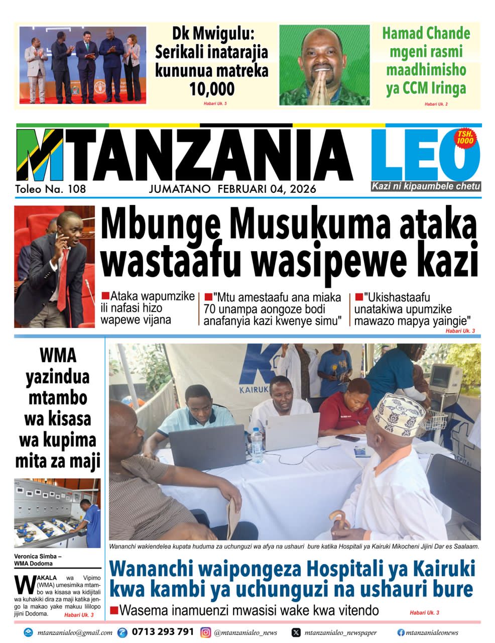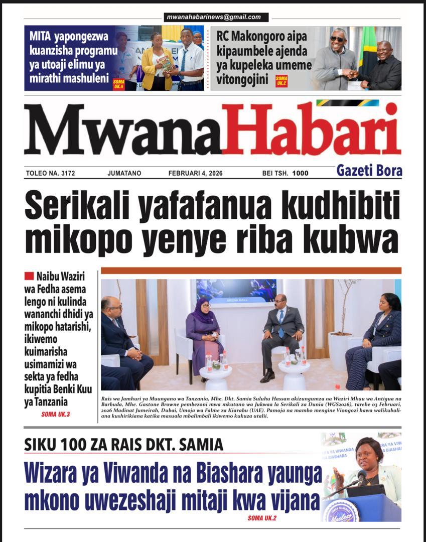 Featured • Magazeti PATA HABARI MOTO MOTO KATIKA MAGAZETI YA LEO JUMATANO FEBRUARI 4,2026 16 hours agoby Alex Sonna256 Views Written by Alex Sonna FacebookXGoogle+PinterestLinkedIn