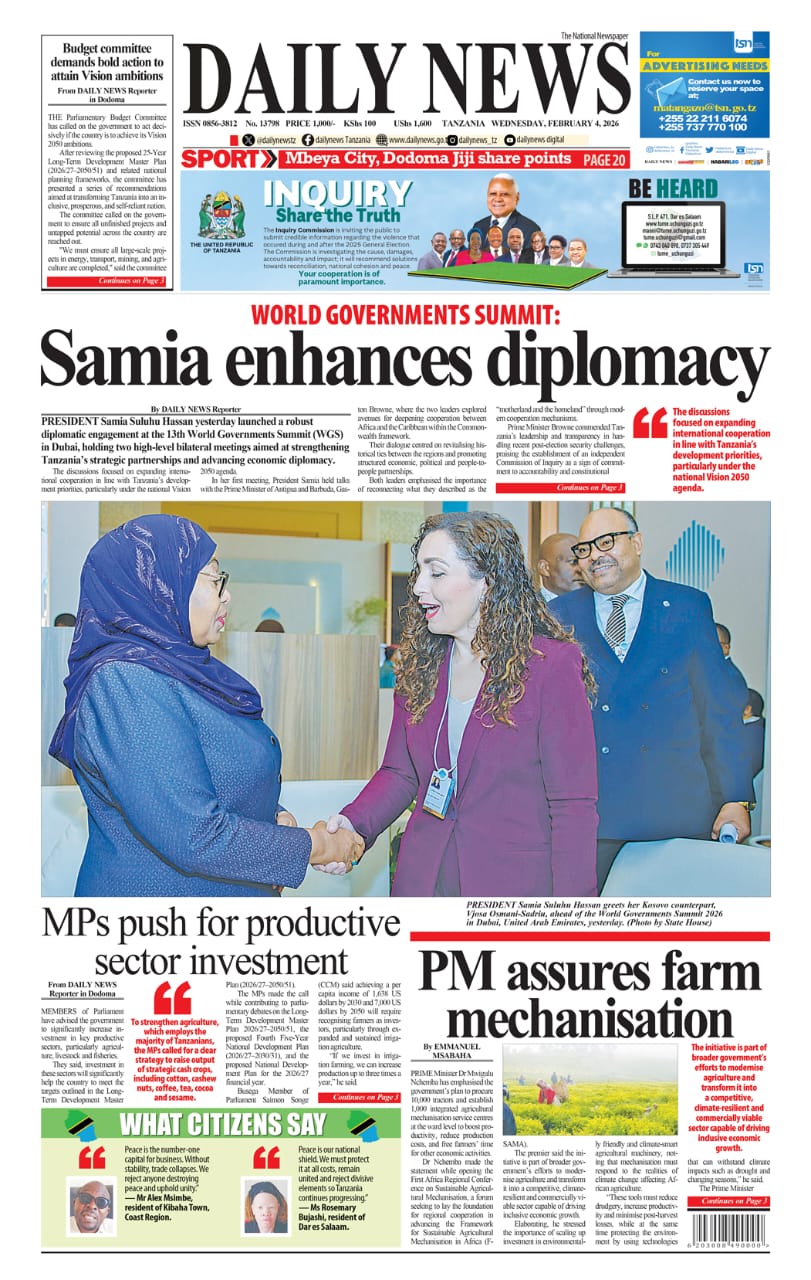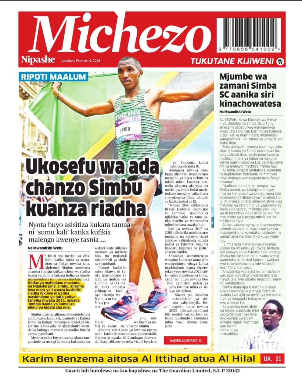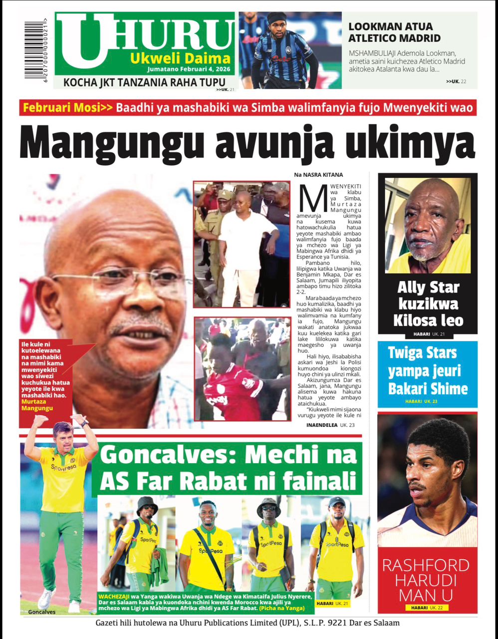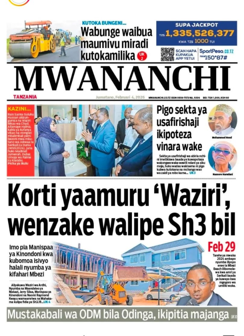 Featured • Magazeti PATA HABARI MOTO MOTO KATIKA MAGAZETI YA LEO JUMATANO FEBRUARI 4,2026 16 hours agoby Alex Sonna256 Views Written by Alex Sonna FacebookXGoogle+PinterestLinkedIn
