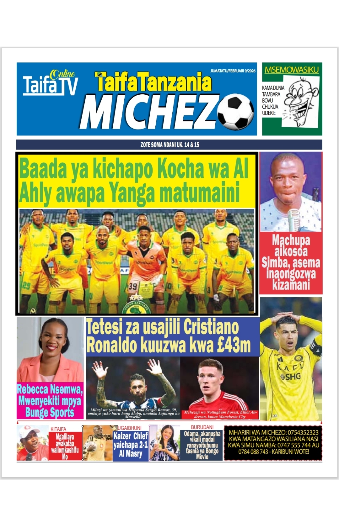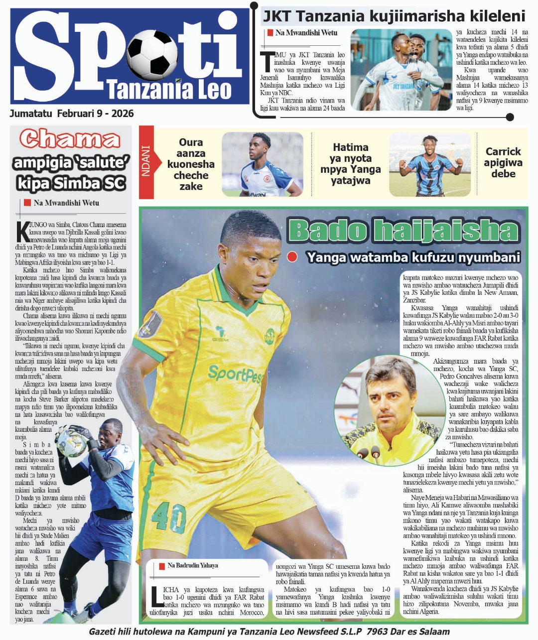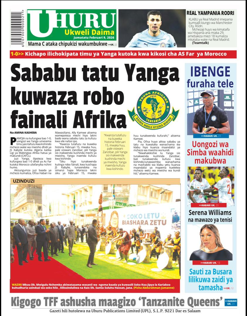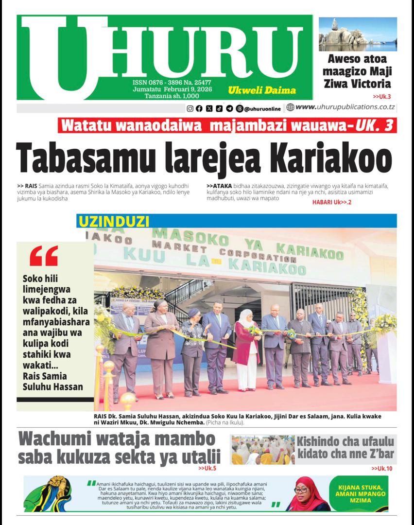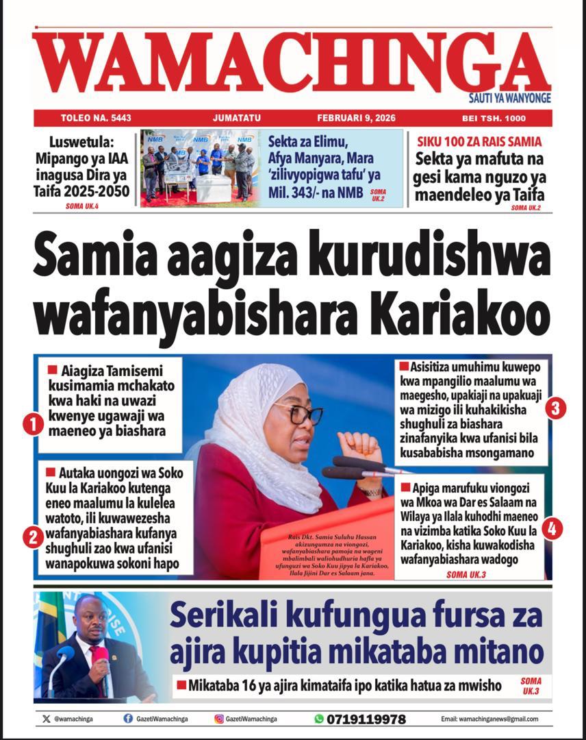 Featured • Magazeti PATA HABARI MOTO MOTO KATIKA MAGAZETI YA LEO JUMATATU FEBRUARI 9,2026 1 month agoby Alex Sonna305 Views Written by Alex Sonna FacebookXGoogle+PinterestLinkedIn