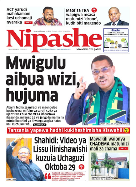 Featured • Magazeti PATA HABARI MOTO MOTO KATIKA MAGAZETI YA LEO JUMAMOSI FEBRUARI 14,2026 7 days agoby Alex Sonna369 Views Written by Alex Sonna FacebookXGoogle+PinterestLinkedIn