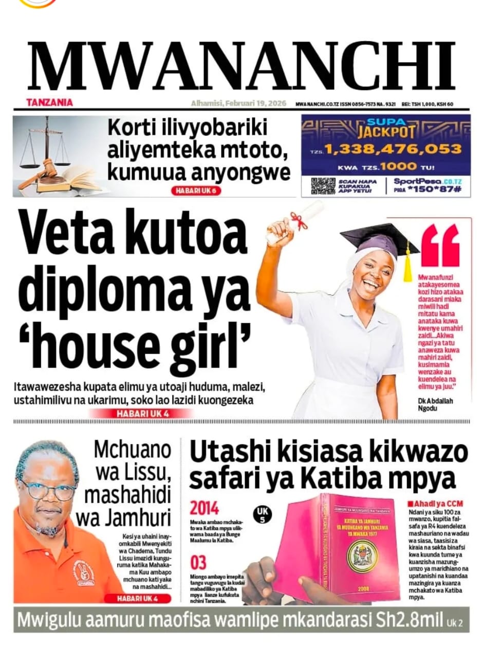 PATA HABARI MOTO MOTO KATIKA MAGAZETI YA LEO ALHAMISI FEBRUARI 19,2026