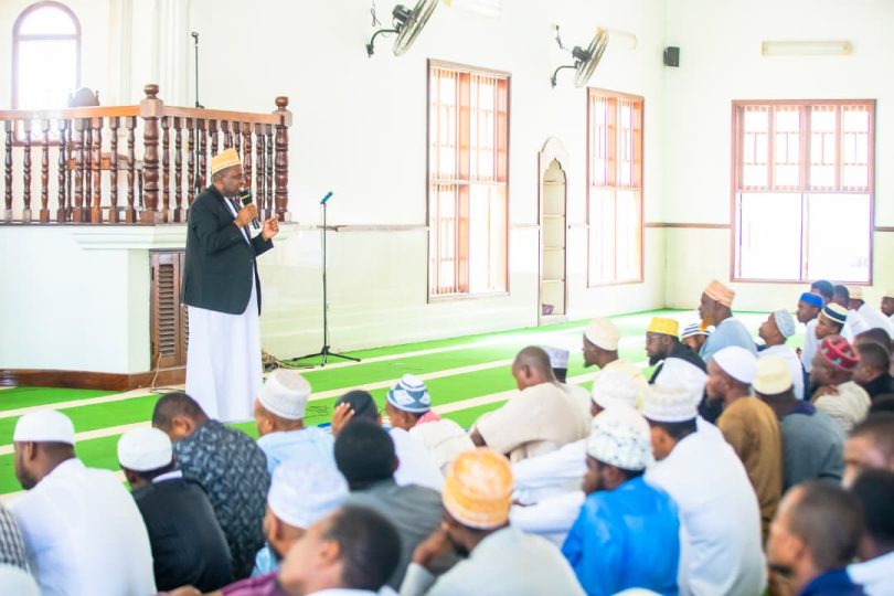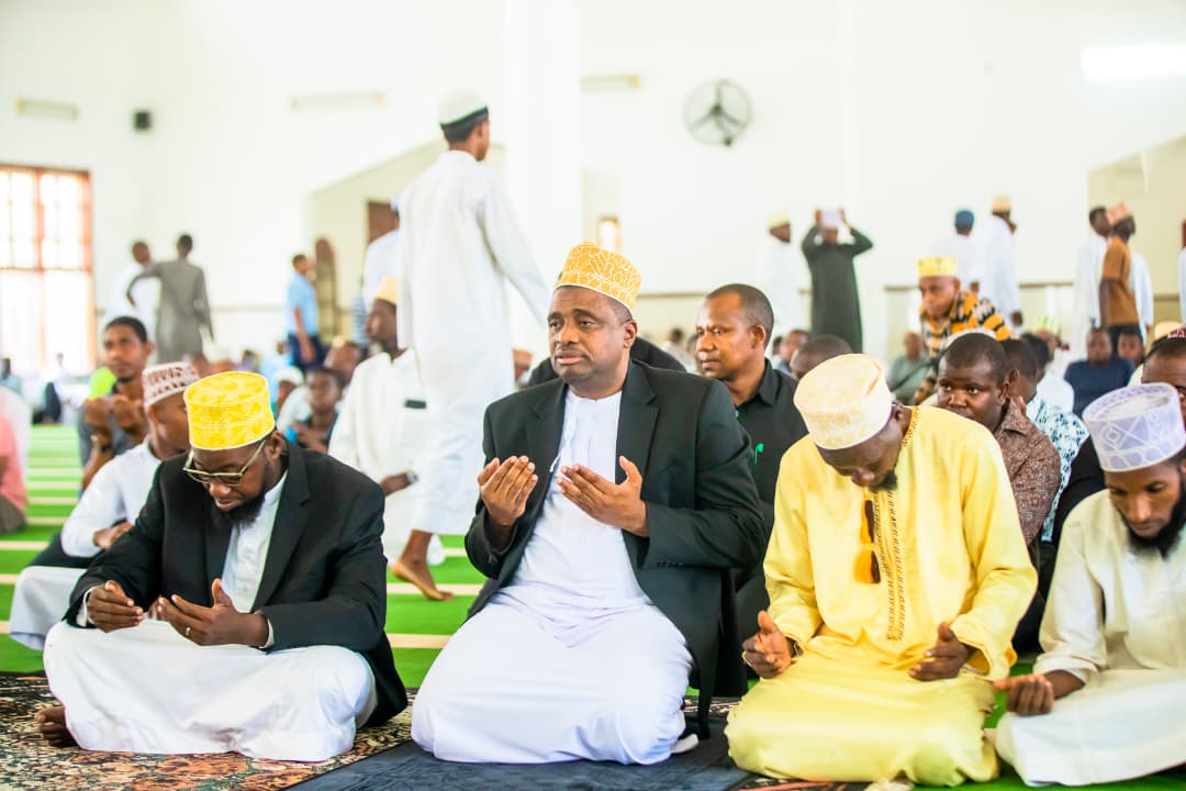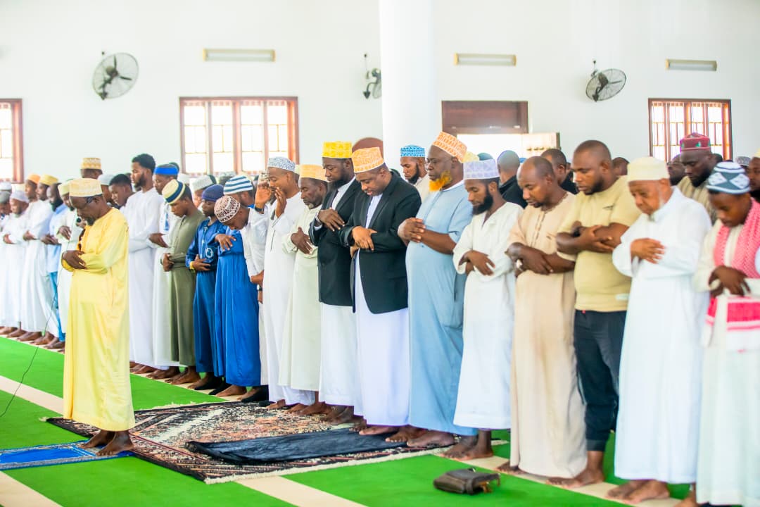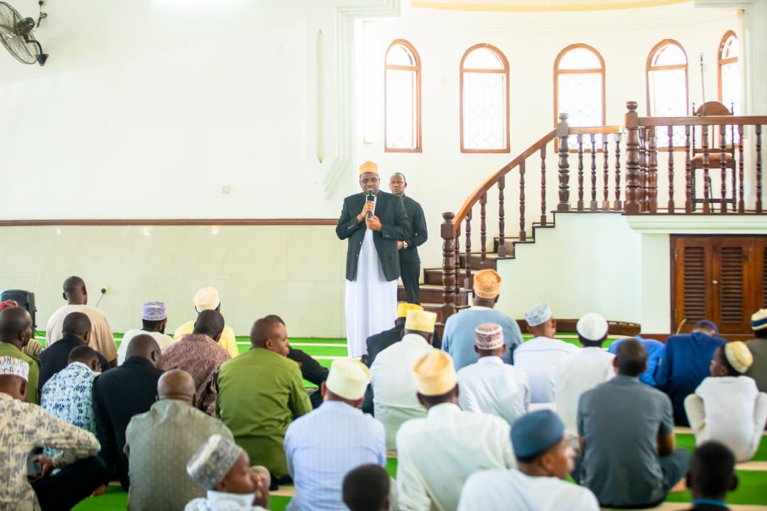 Makamu wa Pili wa Rais wa Zanzibar Alhajj Hemed Suleiman Abdulla akiwasalimia Waumini wa Dini ya kiislam katika Masjid AFRAA BINT ISSA (MASJID SHURBA) uliopo Kidongo Chekundu Wilaya ya Mjini Unguja mara baada ya Swala ya Ijumaa.