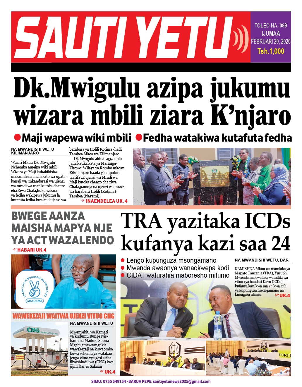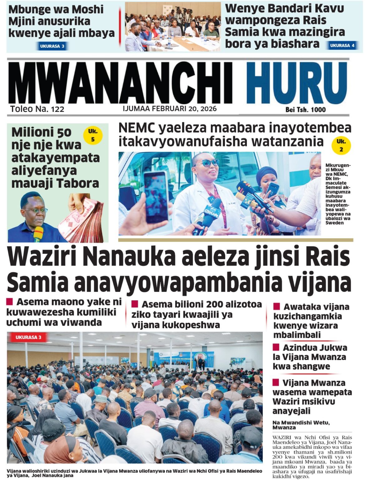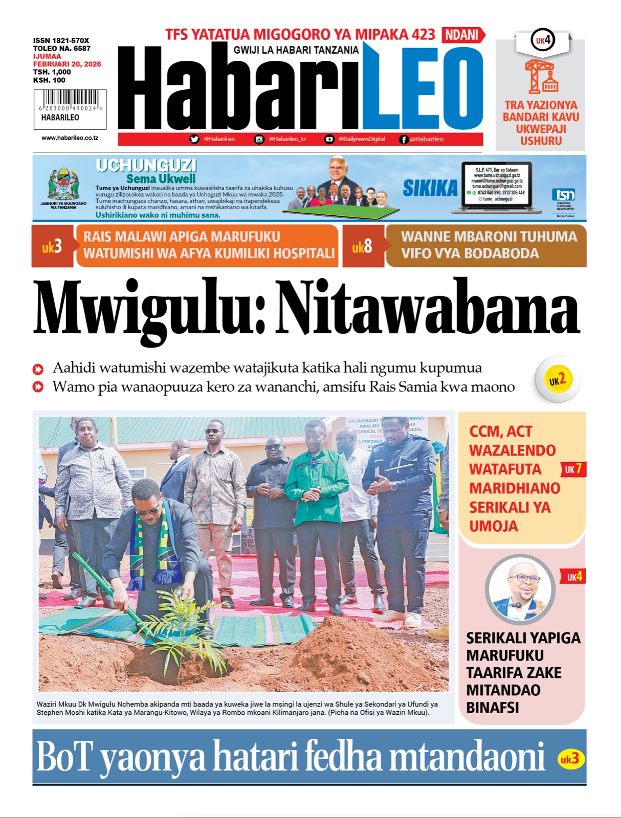 PATA HABARI MOTO MOTO KATIKA MAGAZETI YA LEO IJUMAA 20,2026