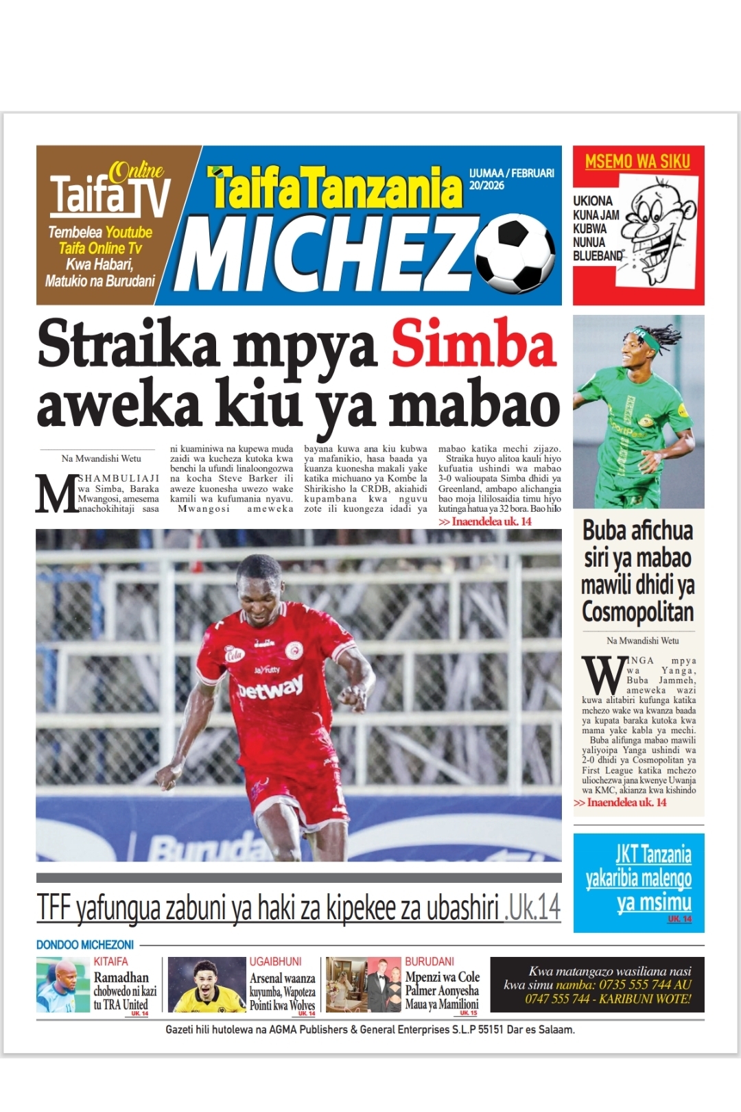 Home » PATA HABARI MOTO MOTO KATIKA MAGAZETI YA LEO IJUMAA 20,2026