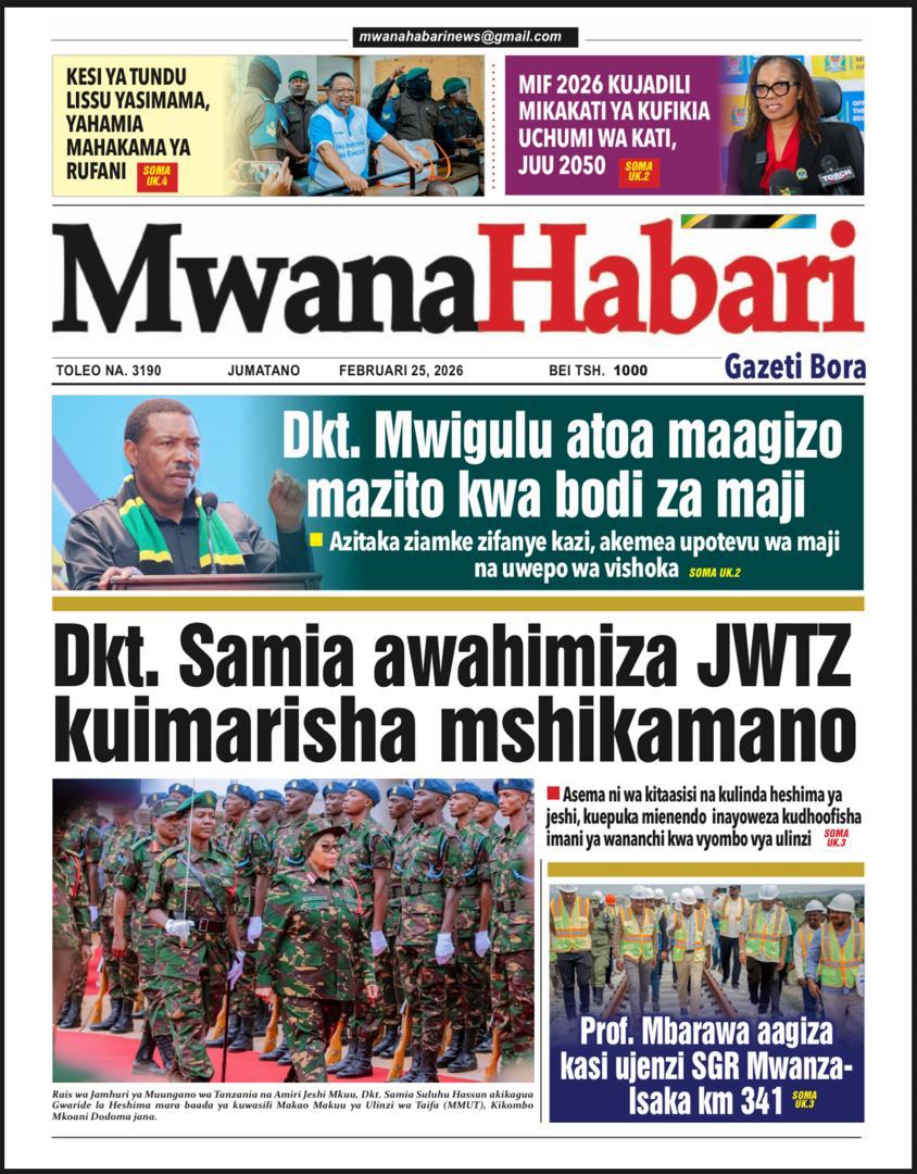 Featured • Magazeti PATA HABARI MOTO MOTO KATIKA MAGAZETI YA LEO JUMATANO FEBRUARI 25,2026 4 weeks agoby Alex Sonna542 Views Written by Alex Sonna FacebookXGoogle+PinterestLinkedIn