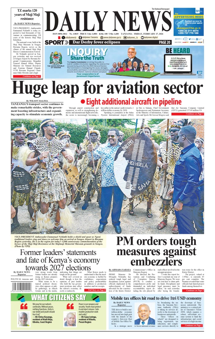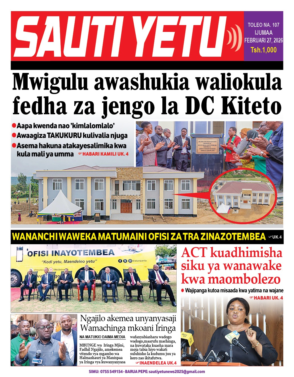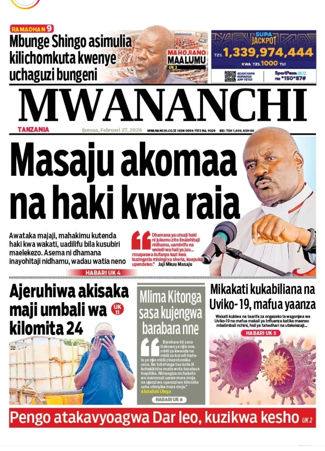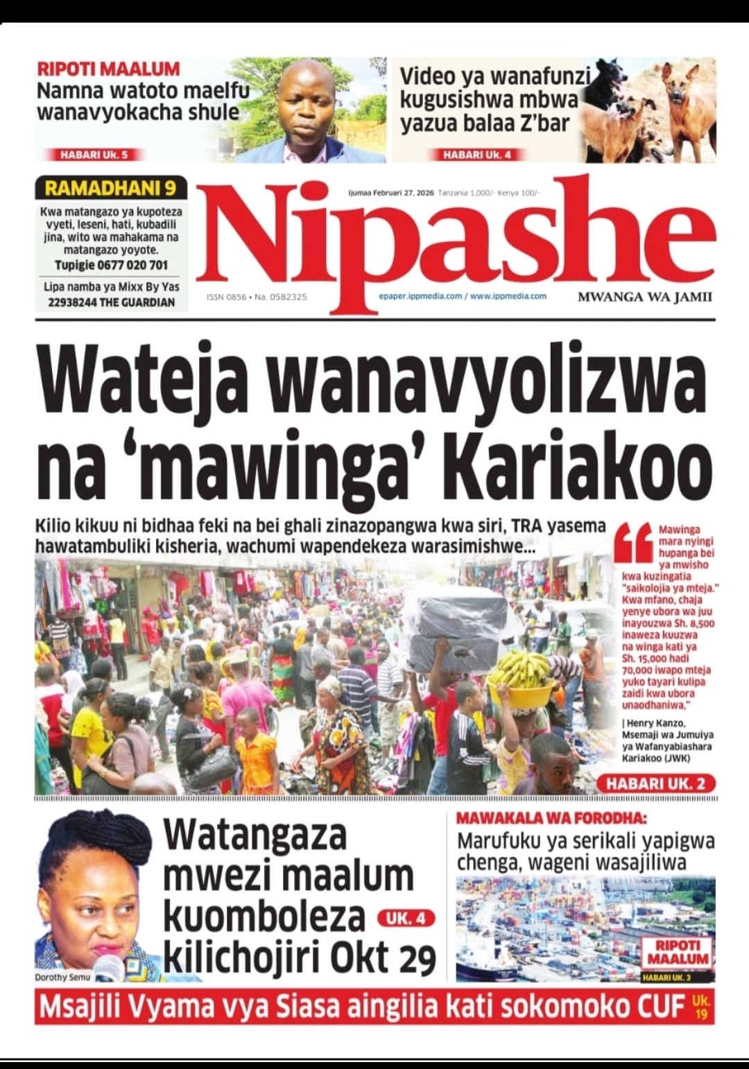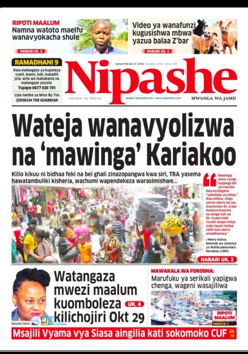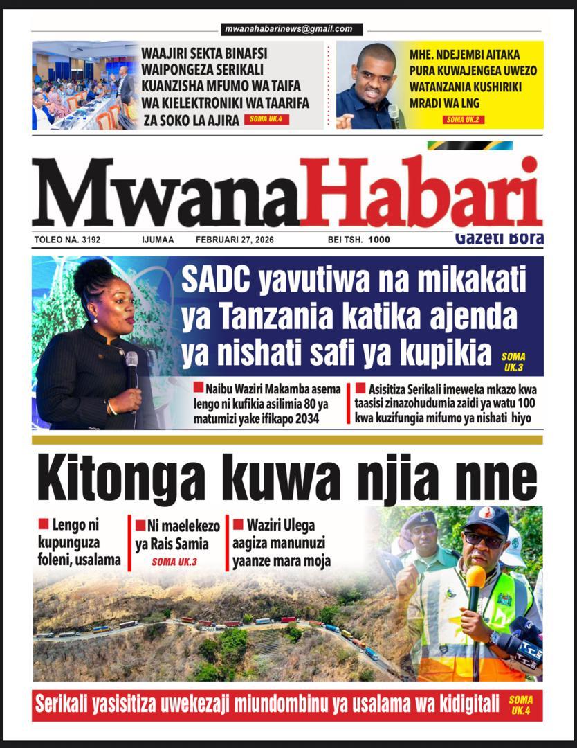 PATA HABARI MOTO MOTO KATIKA MAGAZETI YA LEO IJUMAA FEBRUARI 27,2026