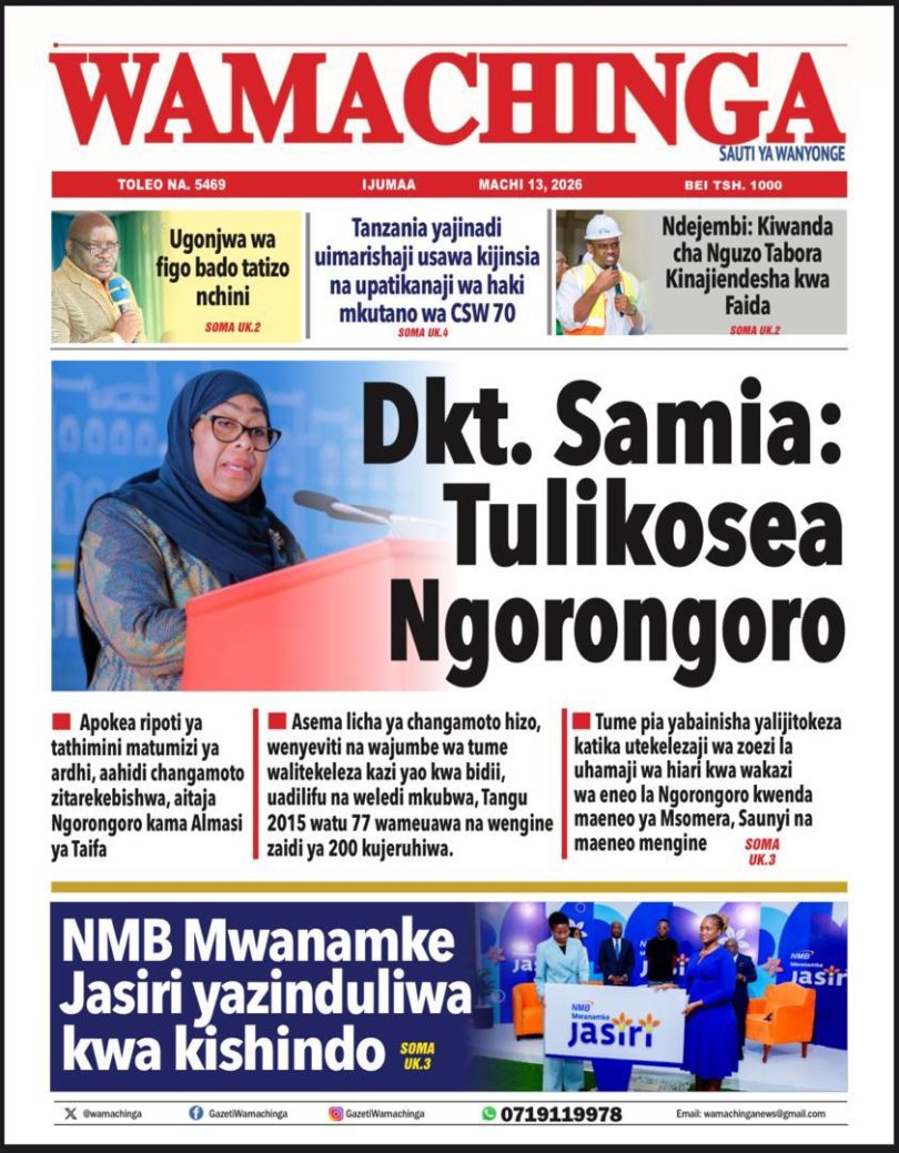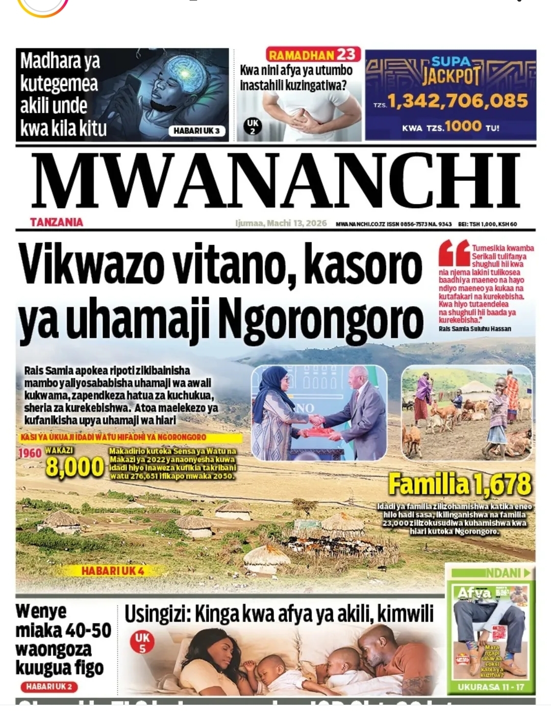 Featured • Magazeti PATA HABARI MOTO MOTO KATIKA MAGAZETI YA LEO IJUMAA MACHI 13,2026 1 month agoby Alex Sonna418 Views Written by Alex Sonna FacebookXGoogle+PinterestLinkedIn
