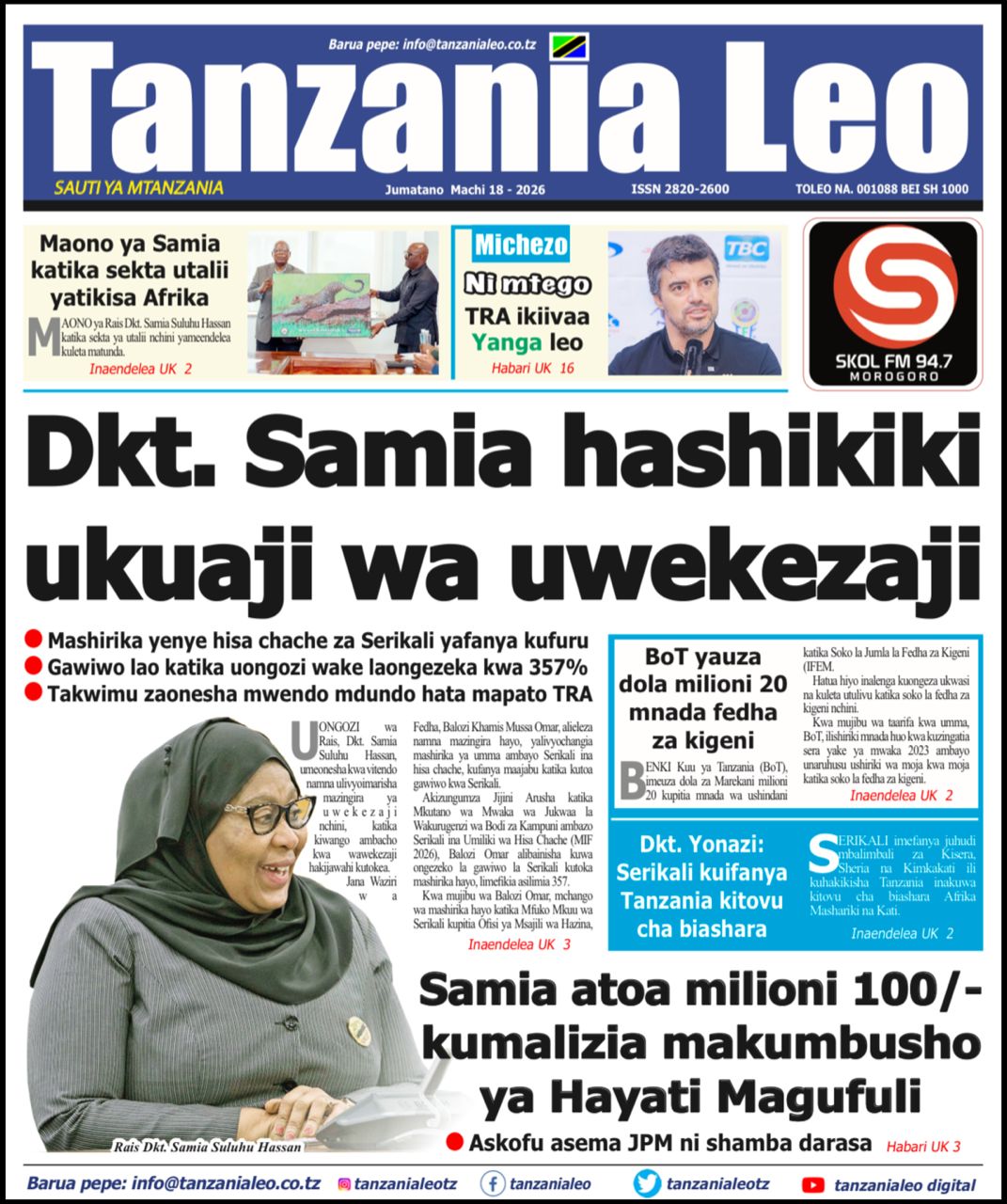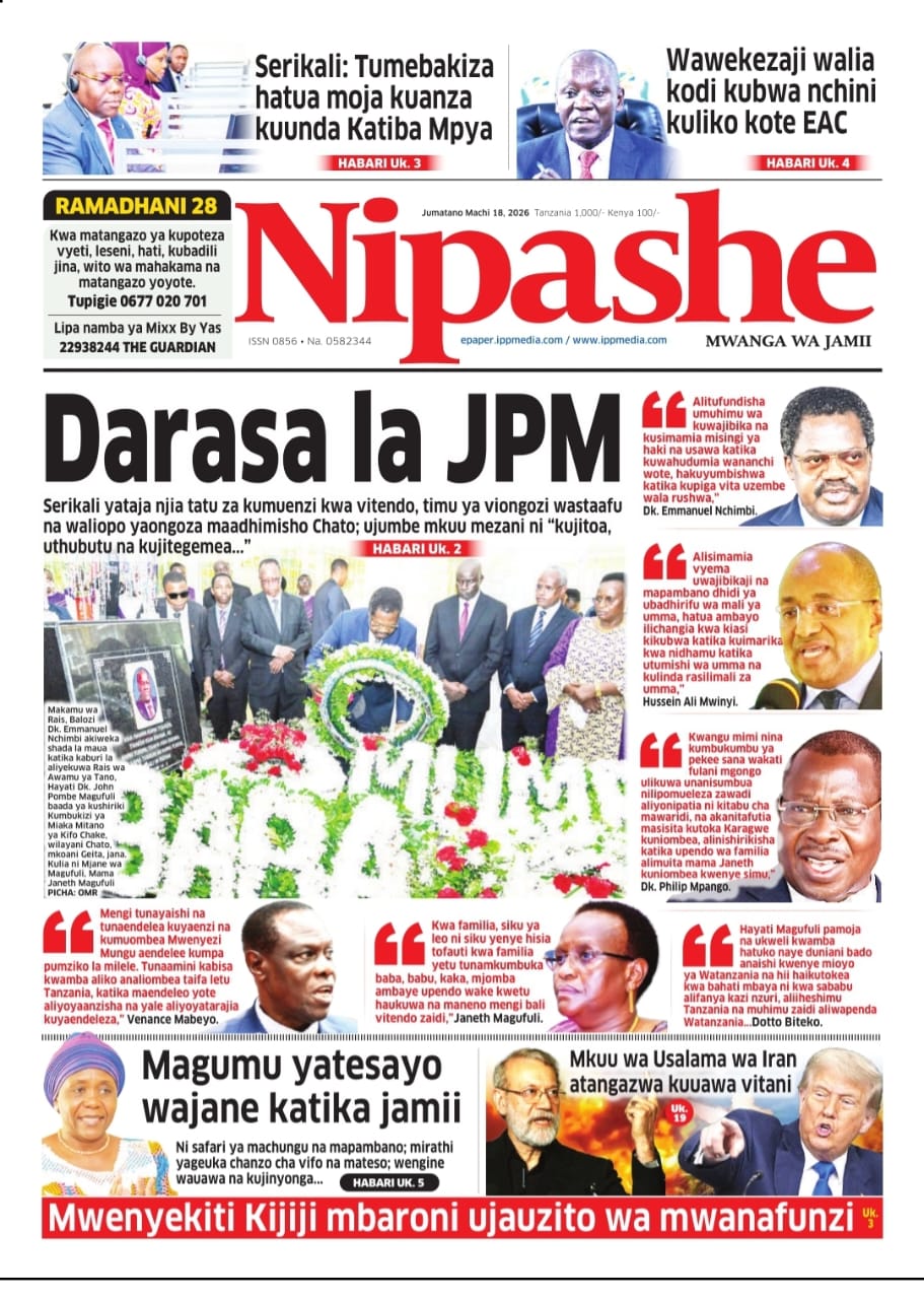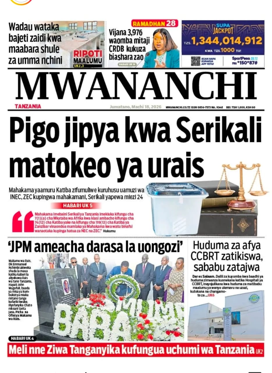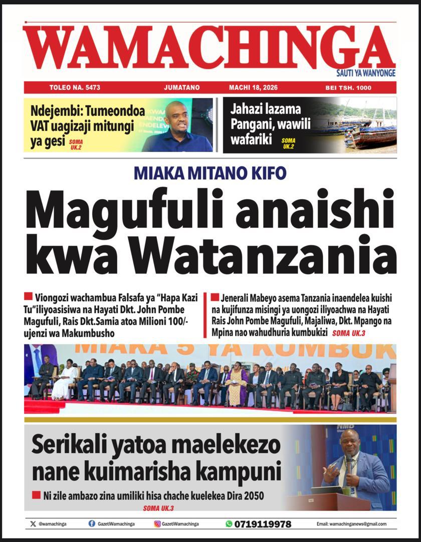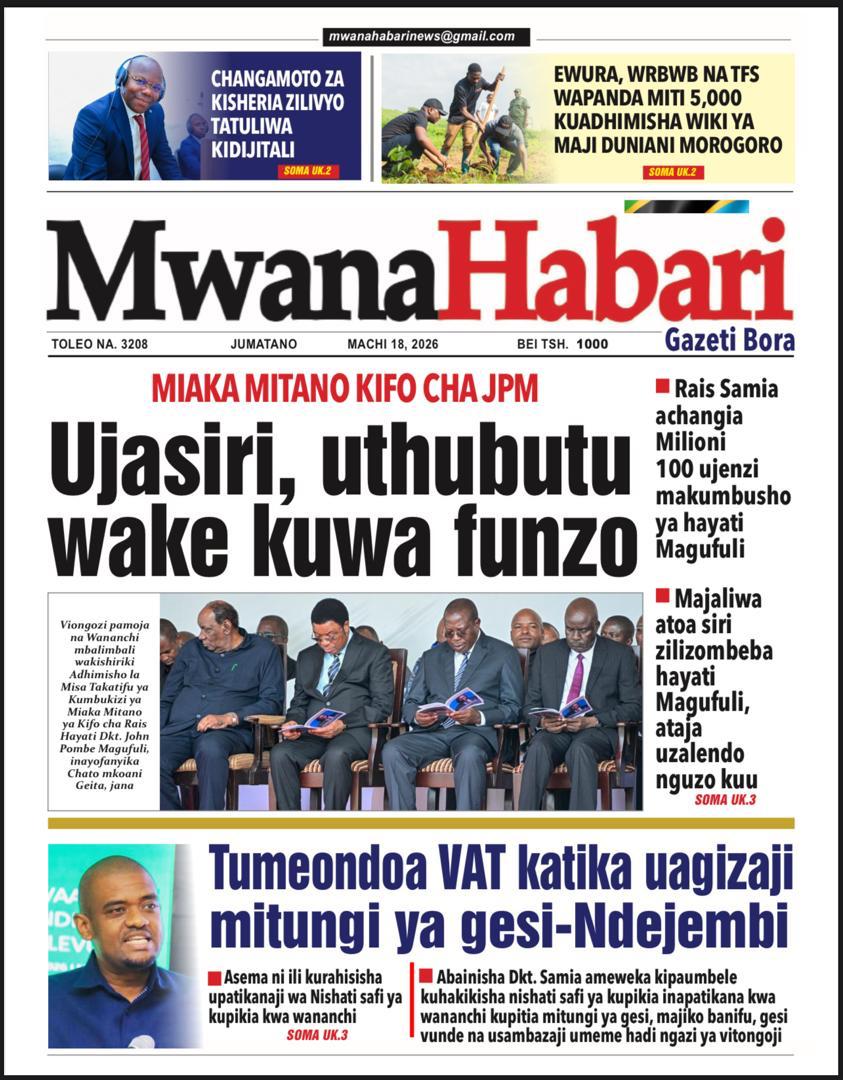 Featured • Magazeti PATA HABARI MOTO MOTO KATIKA MAGAZETI YA LEO JUMATANO MACHI 18,2026 1 day agoby Alex Sonna930 Views Written by Alex Sonna FacebookXGoogle+PinterestLinkedIn