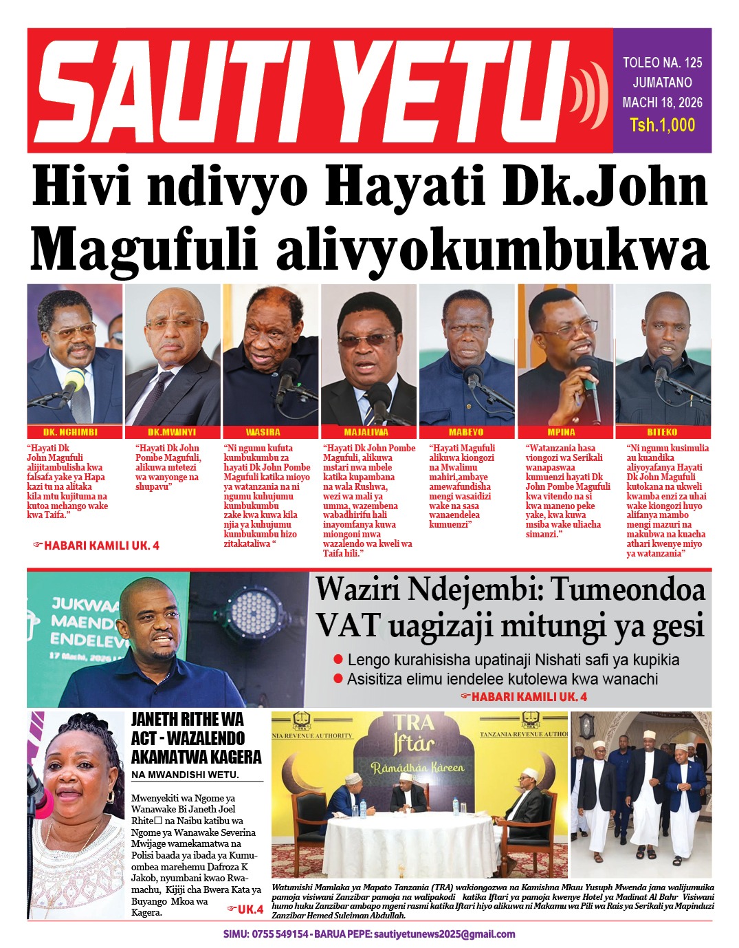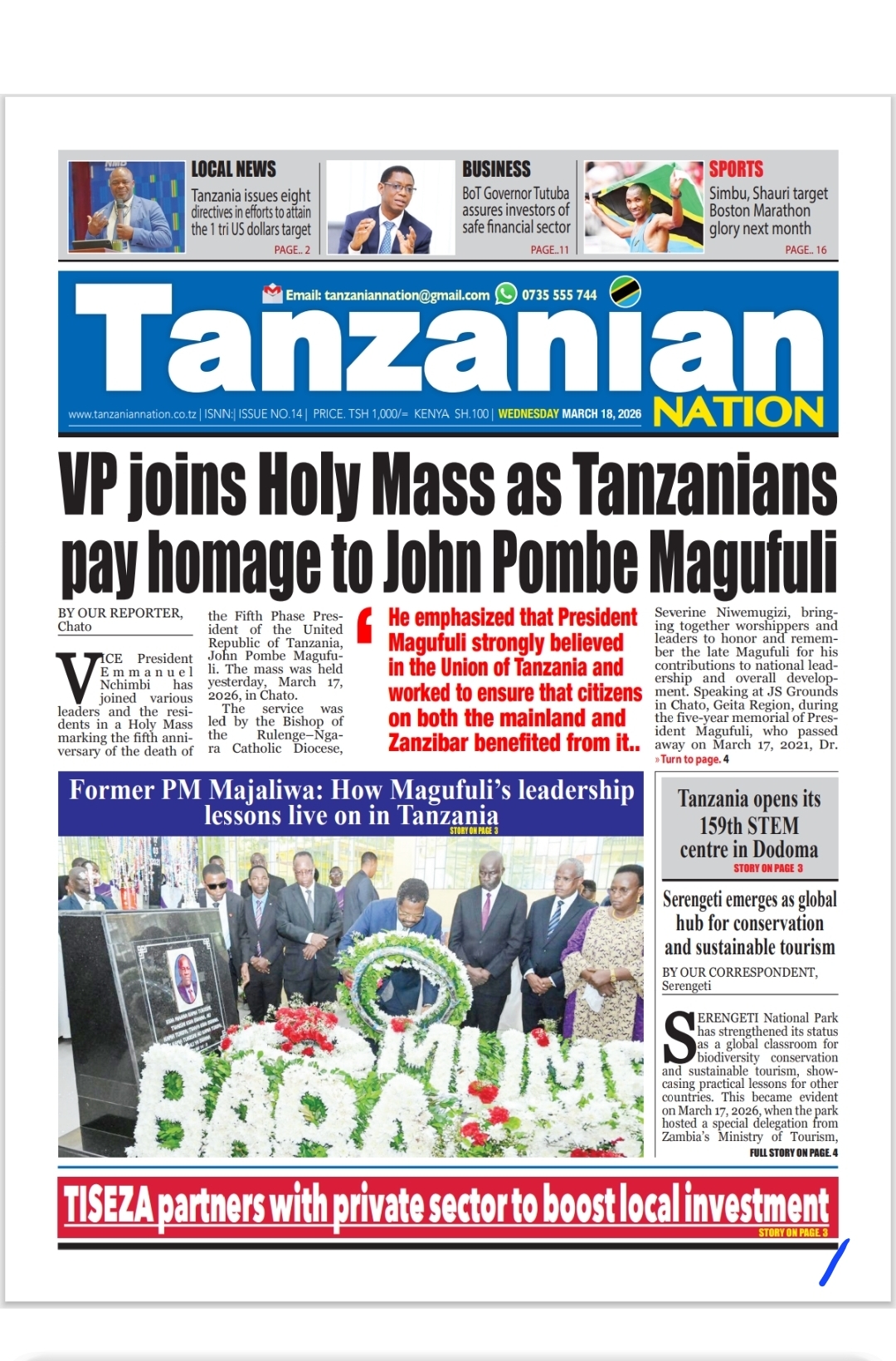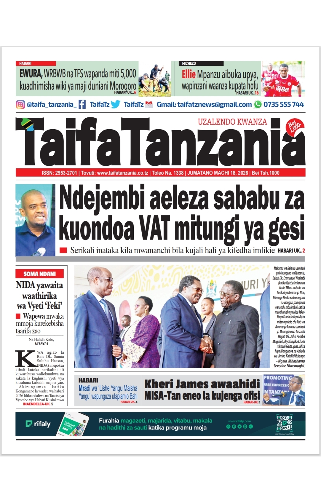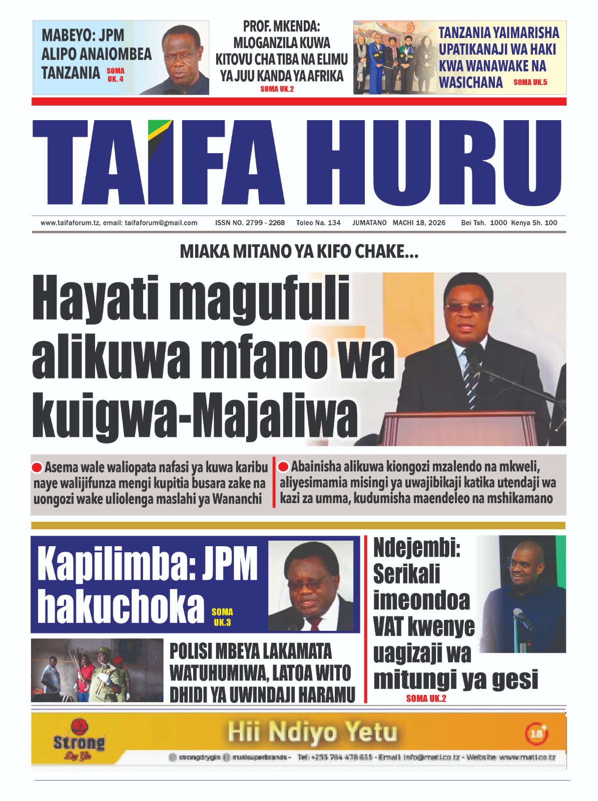 Featured • Magazeti PATA HABARI MOTO MOTO KATIKA MAGAZETI YA LEO JUMATANO MACHI 18,2026 1 day agoby Alex Sonna930 Views Written by Alex Sonna FacebookXGoogle+PinterestLinkedIn