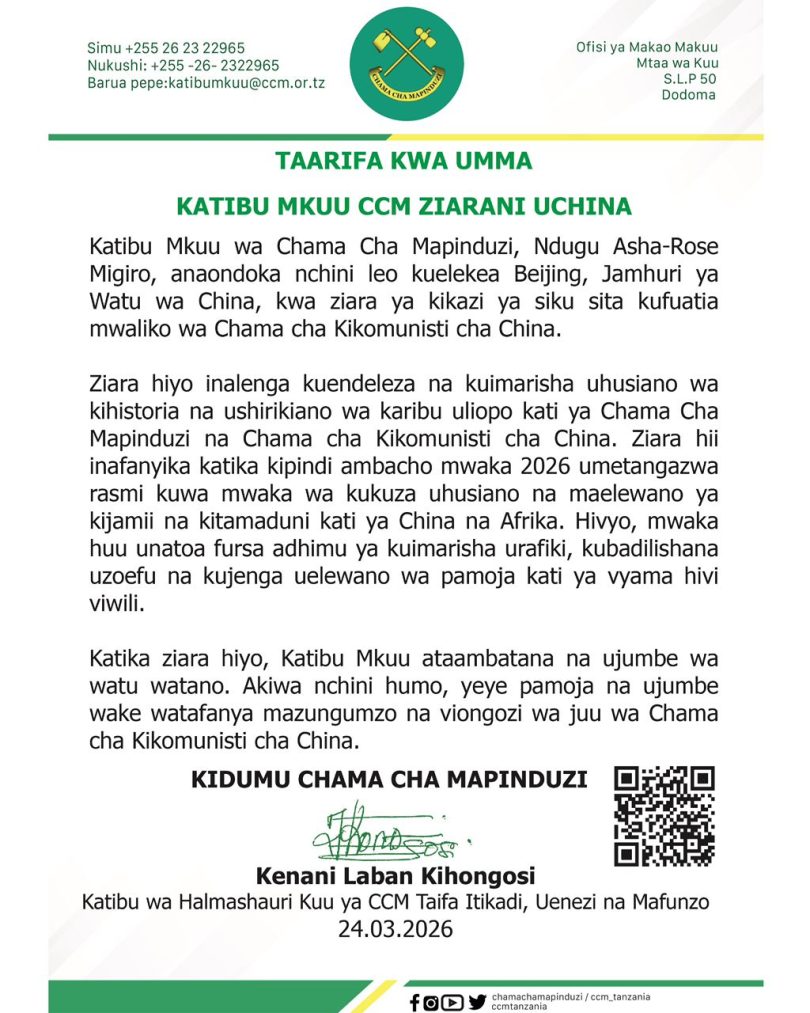 Featured • Kitaifa KATIBU MKUU CCM ZIARANI UCHINA 4 weeks agoby Alex Sonna46 Views Written by Alex Sonna FacebookXGoogle+PinterestLinkedIn