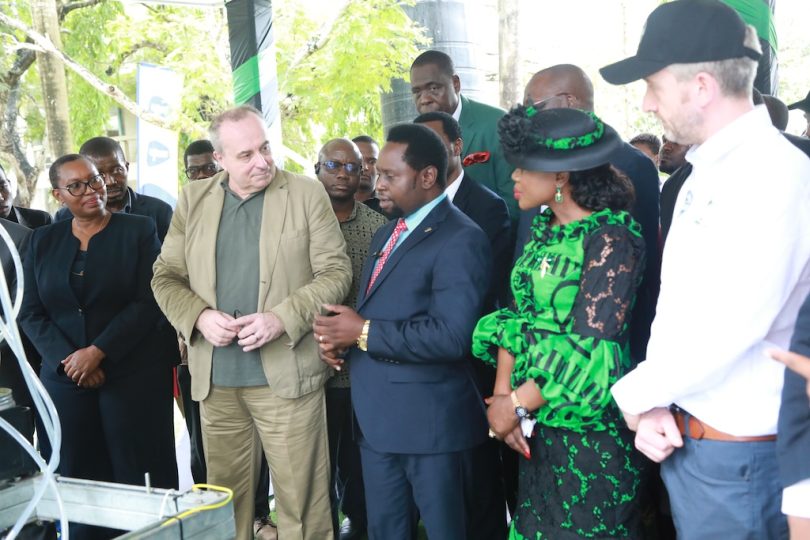 Naibu Waziri Ofisi ya Makamu wa Rais (Muungano na Mazingira) Mhe. Dkt. Festo Dugange akipata maelezo kuhusu mtambo wa haidrojeni baada ya kuuzindua katika Ukumbi wa Nkrumah, Chuo Kikuu cha Dar es Salaam leo Machi 25, 3026 katika ufunguzi wa Kongamano la Wadau wa Mazingira kuhusu Nishati safi aina ya Haidrojeni.