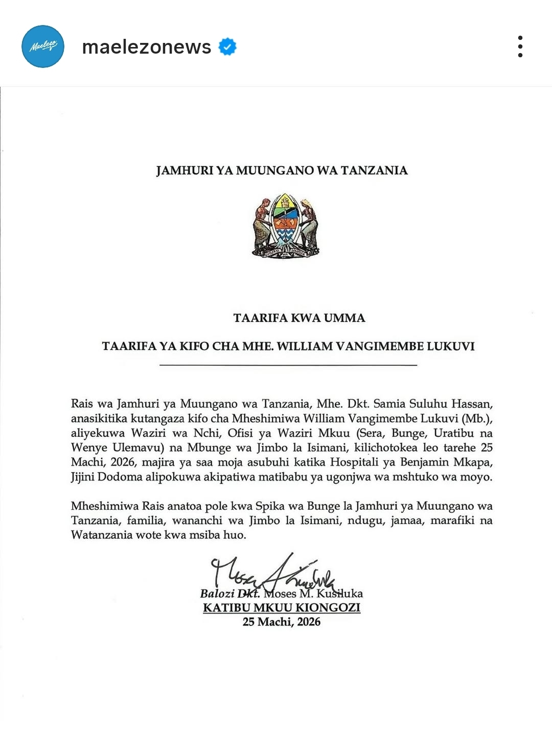 Featured • Kitaifa WAZIRI LUKUVI AFARIKI DUNIA 4 weeks agoby Alex Sonna45 Views Written by Alex Sonna FacebookXGoogle+PinterestLinkedIn