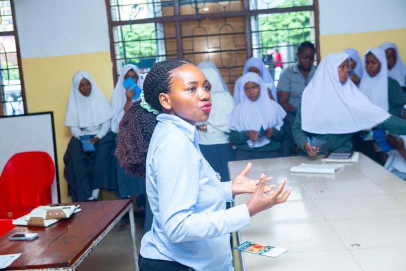 Afisa Mlinda Mlaji kutoka FCC ,Thecla Kitosi,akitoa elimu kuhusiana madhara ya bidhaa bandia katika Shule ya Sekondari Mnazi Mmoja iliyopo jijini Dar es Salaam ikiwa ni sehemu ya kuelekea Maadhimisho ya Wiki ya Siku ya Haki za Mlaji Duniani.