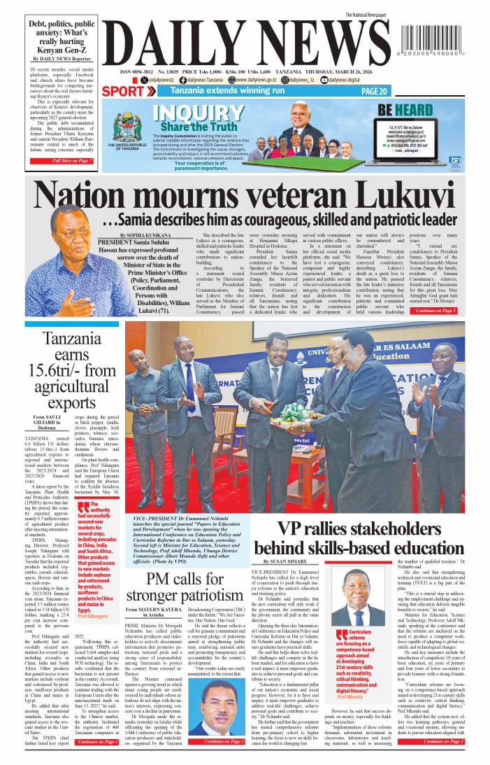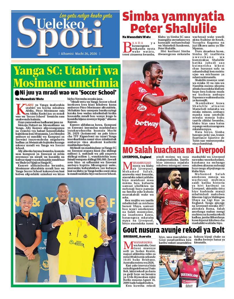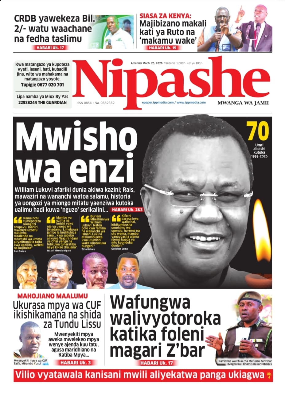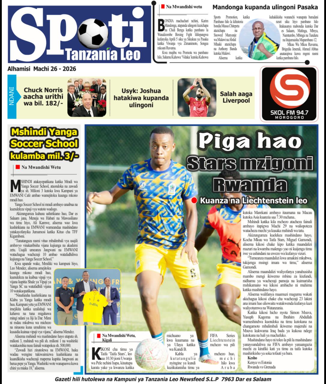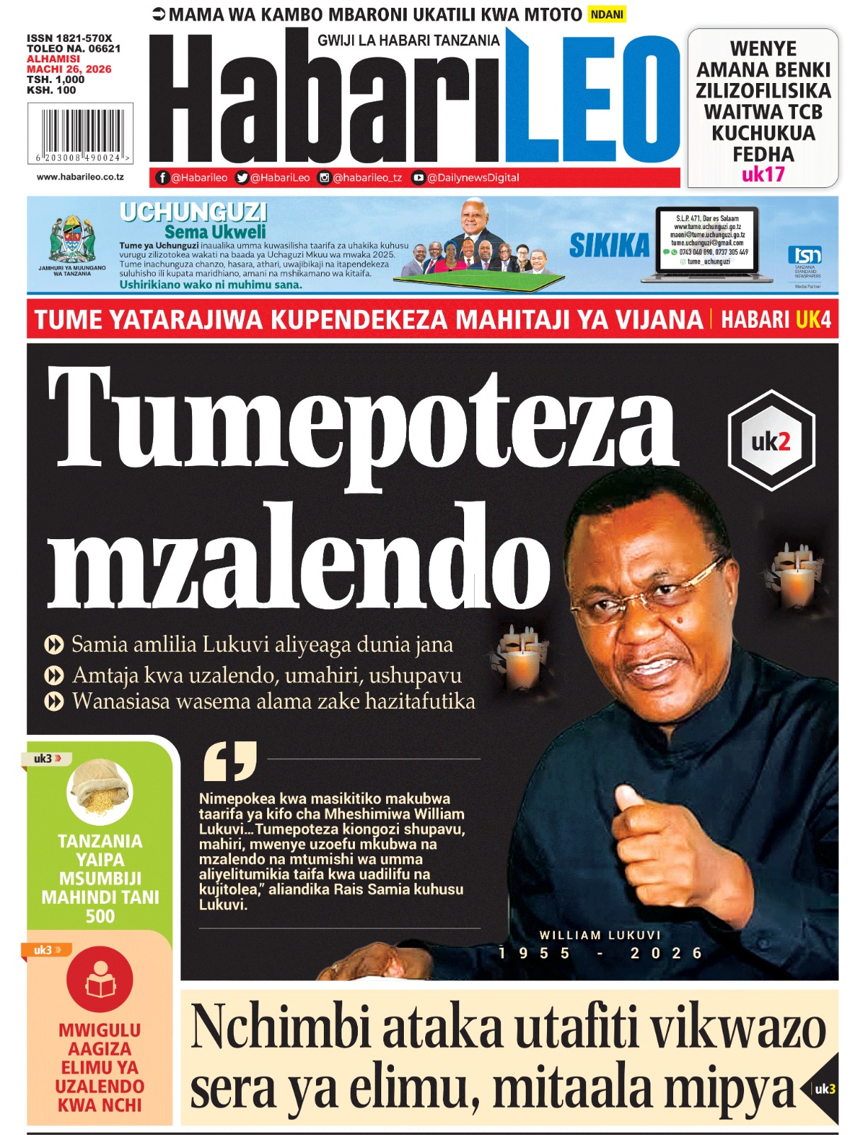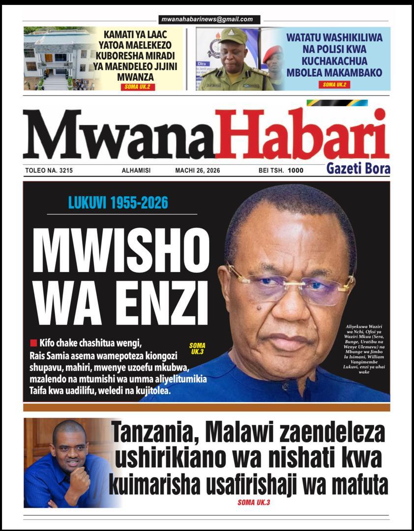 Featured • Magazeti PATA HABARI MOTO MOTO KATIKA MAGAZETI YA LEO ALHAMISI MACHI 26,2026 27 seconds agoby Alex Sonna1 Views Written by Alex Sonna FacebookXGoogle+PinterestLinkedIn