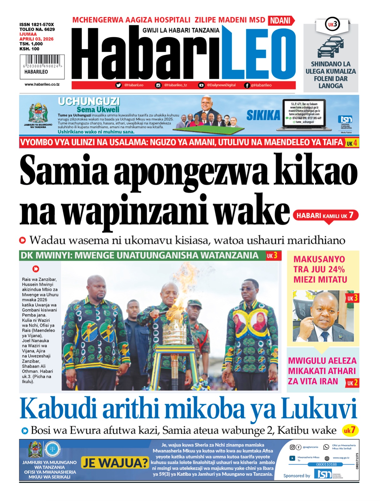 Featured • Magazeti PATA HABARI MOTO MOTO KATIKA MAGAZETI YA LEO IJUMAA APRILI 3,2026 2 weeks agoby Alex Sonna661 Views Written by Alex Sonna FacebookXGoogle+PinterestLinkedIn