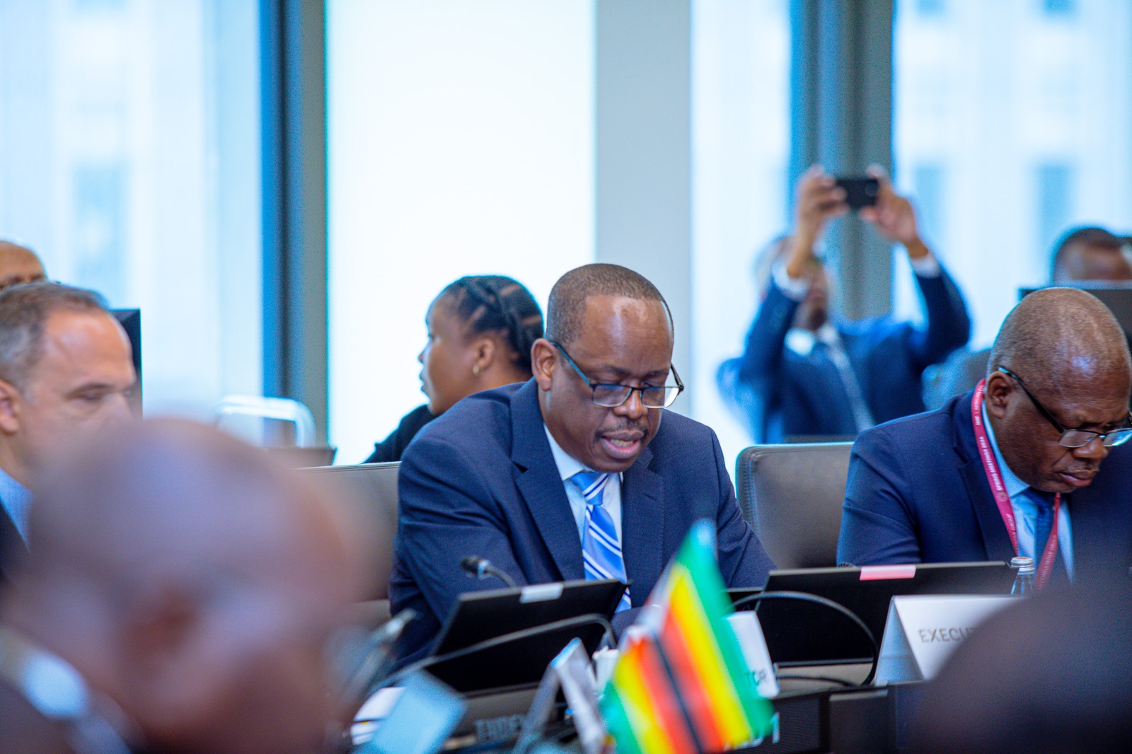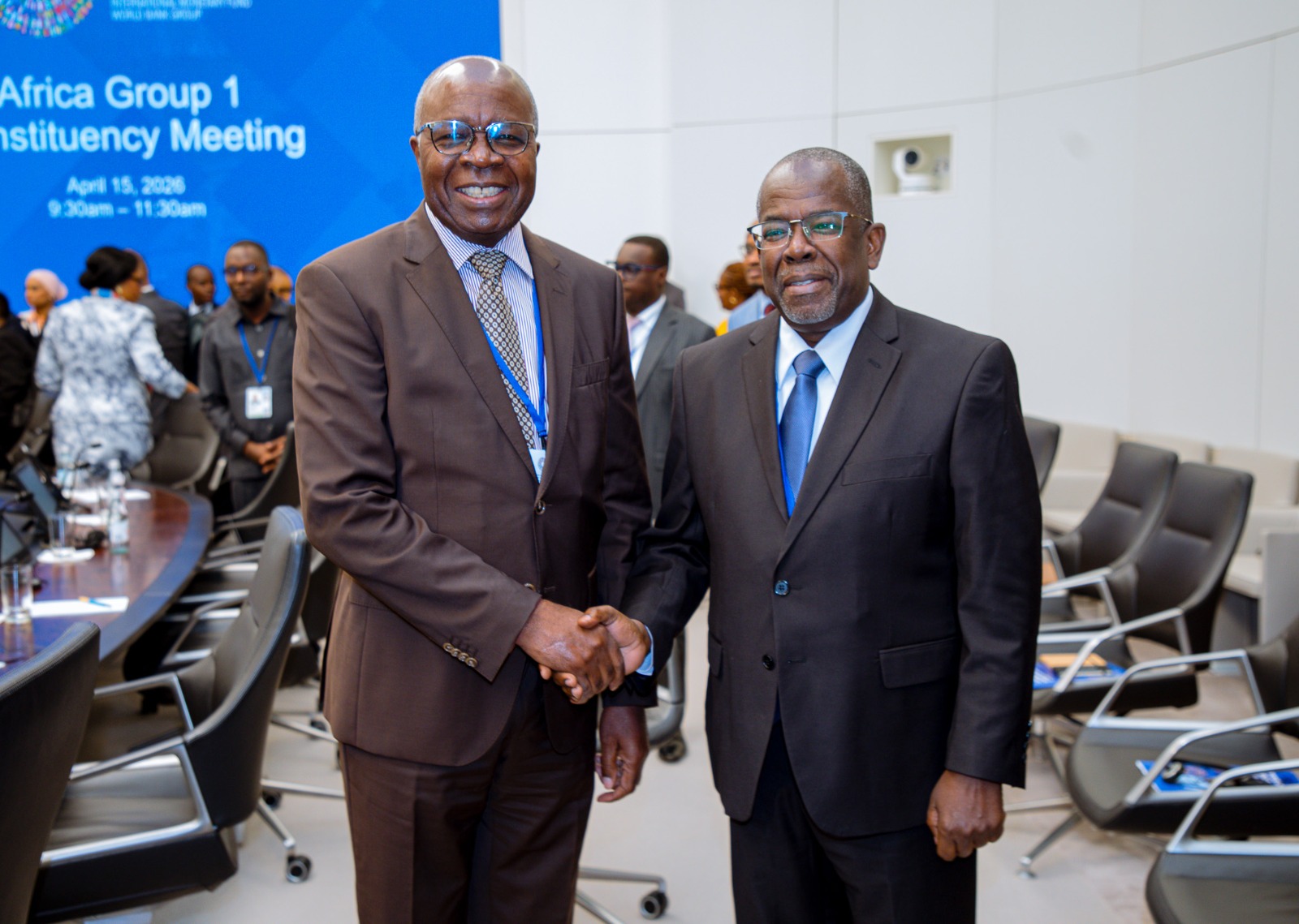 Waziri wa Fedha, Mhe. Balozi Khamis Mussa Omar (Mb), ambaye pia ni Gavana wa Bodi ya Shirika la Fedha la Kimataifa-IMF, ameshiriki Mkutano wa nchi za Kundi la Kwanza za Kanda ya Afrika (Africa Group 1 Constituency) wa Shirika hilo, uliofanyika katika Ofisi za Shirika hilo jijini Washington D.C, nchini Marekani, akiwa na Gavana wa Benki Kuu ya Tanzania, Bw. Emmanuel Tutuba, katika mikutano inayoendelea ya Majira ya Kipupwe ya Benki ya Dunia na Shirika la Fedha la Kimataifa IMF, jijini humo.