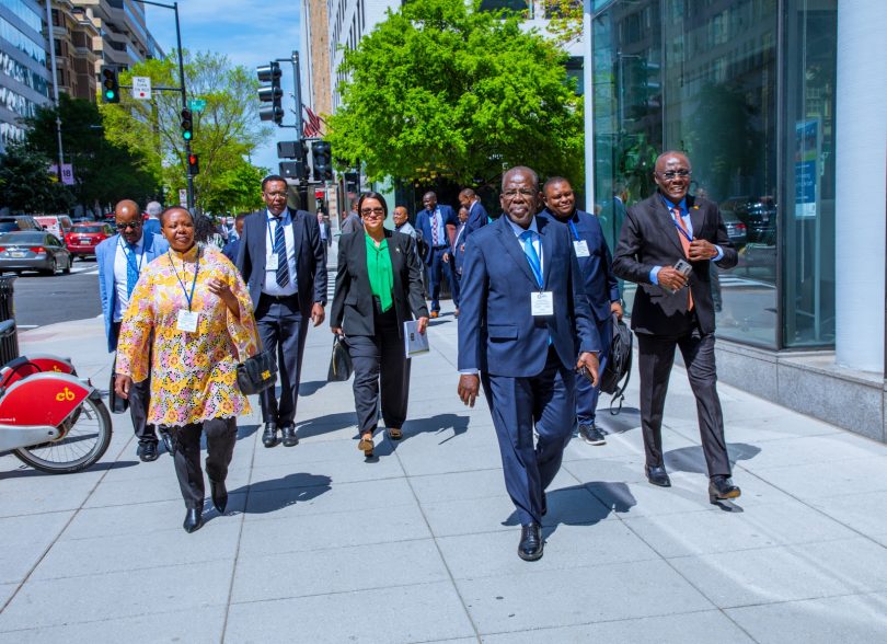 Waziri wa Fedha, Mhe. Balozi Khamis Mussa Omar (Mb) (katikati), Waziri wa Fedha na Mipango Zanzibar, Mhe. Dkt. Juma Malik Akil (mbele kulia), Balozi wa Tanzania nchini Marekani Mhe. Balozi Dkt. Elsie Sia Kanza (mbele kushoto) na Katibu Mkuu Ofisi ya Rais Mipango ambaye pia ni Katibu Mtendaji wa Tume ya Mipango, Dkt. Tausi Kida (wa tatu kushoto nyuma) wakiwa katika moja ya Mitaa ya Jijini Washington DC nchini Marekani wakielekea Makao Makuu ya Ofisi za Benki ya Dunia na Shirika la Fedha la Kimataifa-IMF kwa ajili ya kushiriki Mikutano mbalimbali ya Majira ya Kipupwe. Tanzania ni nchi mwanachama wa Taasisi hizo kubwa za fedha duniani.