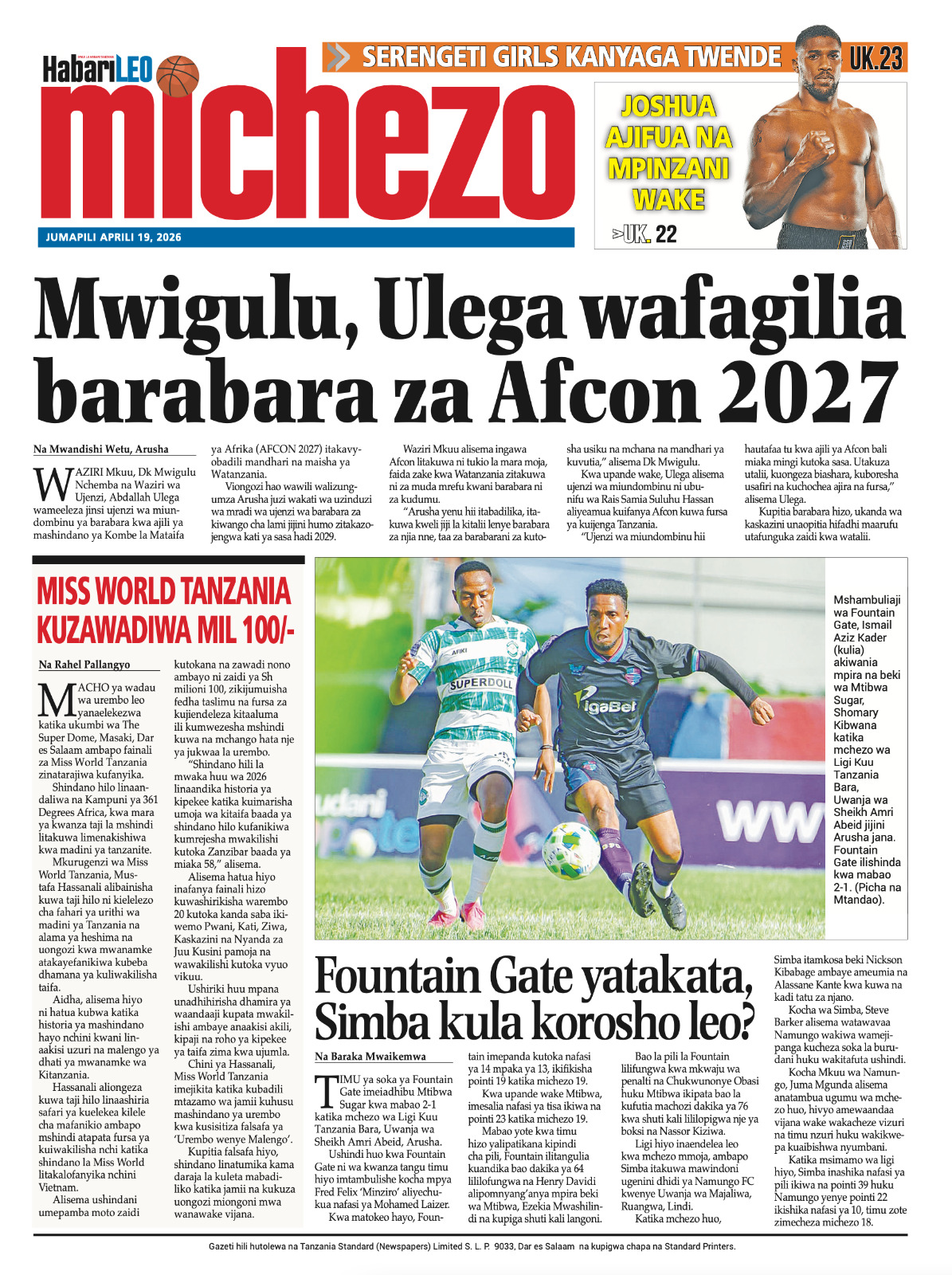 PATA HABARI MOTO MOTO KATIKA MAGAZETI YA LEO JUMAPILI APRILI 19,2026