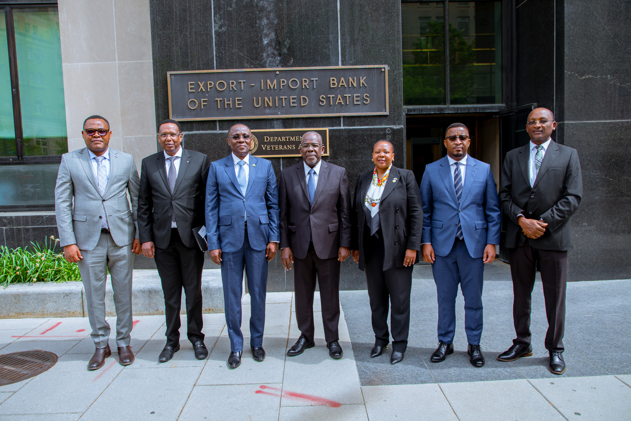 Waziri wa Fedha, Mhe. Balozi Khamis Mussa Omar (Mb) (Katikati), Waziri wa Fedha na Mipango Zanzibar, Mhe. Juma Malik Akil (wa tatu kushoto), Balozi wa Tanzania nchini Marekani, Mhe. Elsie Sia Kanza (wa tatu kulia), Kaimu Naibu Katibu Mkuu Wizara ya Fedha, Bw. Rished Bade (wa pili kushoto), Mkurugenzi Mtendaji wa Benki ya Maendeleo-TIB, Bw. Deogratius Kwiyukwa (kushoto), na Afisa Mtendaji Mkuu wa Benki ya Biashara Tanzania – TCB, Bw. Adam Mihayo (wa pili kulia), wakiwa katika picha ya pamoja baada ya kikao chao na Benki ya Exim ya Marekani, kilichofanyika katika Ofisi ya Benki hiyo, jijini Washington D.C nchini Marekani kando ya Mikutano ya Kipupwe (Spring Meetings) ya Benki ya Dunia na Shirika la Fedha la Kimafaifa-IMF, inayofanyika jijini humo, ambapo walijadili kuongeza ushirikiano ili kuchochea ukuaji wa uchumi wa Taifa kupitia miradi mbalimbali ya uzalishaji ikiwemo ujenzi wa miundombinu, sekta muhimu za madini, nishati, usafiri na usafirishaji na mizigo, dawa na usindikaji wa mazao ya kilimo.