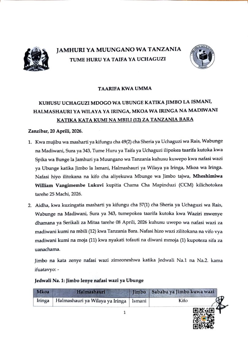 Featured • Kitaifa UCHAGUZI JIMBO LA ISIMANI NA KATA 12 ZA TANZANIA BARA KUFANYIKA JUNI MOSI MWAKA HUU 1 hour agoby Alex Sonna7 Views Written by Alex Sonna FacebookXGoogle+PinterestLinkedIn