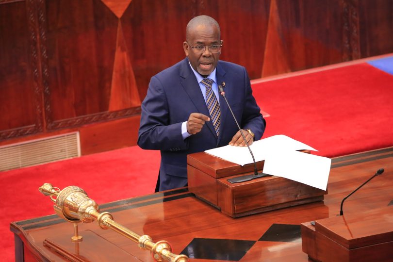 Waziri wa Fedha, Mhe. Balozi Khamis Mussa Omar (Mb), akijibu swali la Mbunge wa Kinondoni, Mhe. Tarimba Gulam Abbas (hayupo pichani), ambaye alitaka kujua sababu za Serikali za kutokutoa bei elekezi kwa makato ya huduma za Mobile Money ili kuwapunguzia gharama Wananchi.